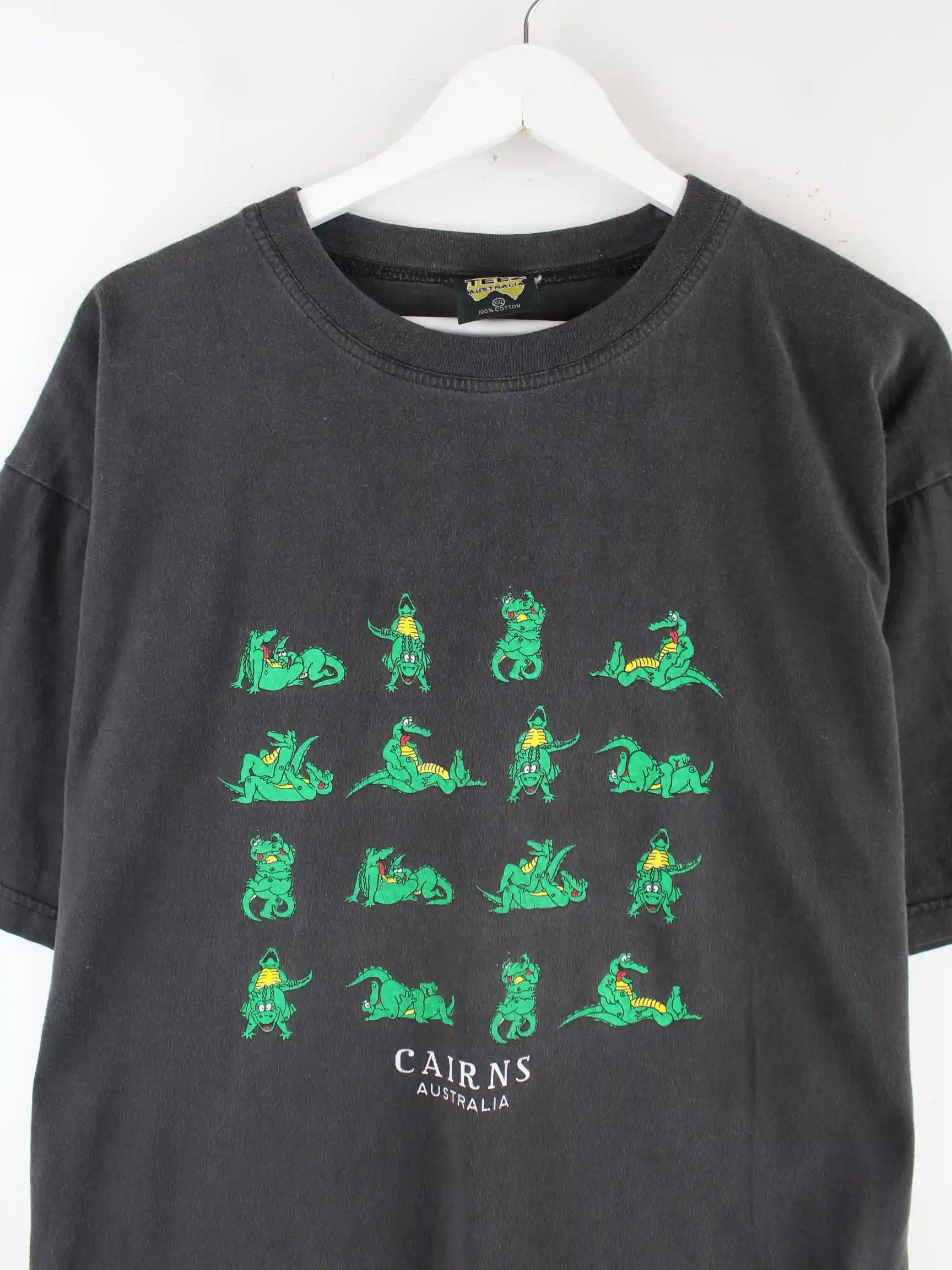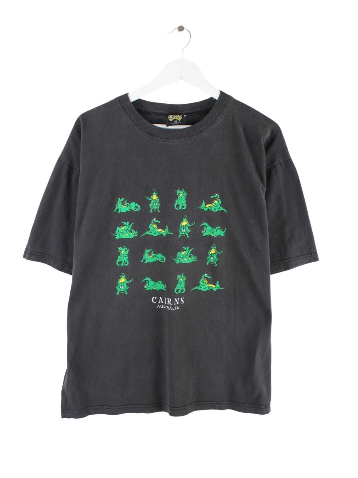 Vintage 90s Funny Crocodile Print Faded T-Shirt Schwarz XL