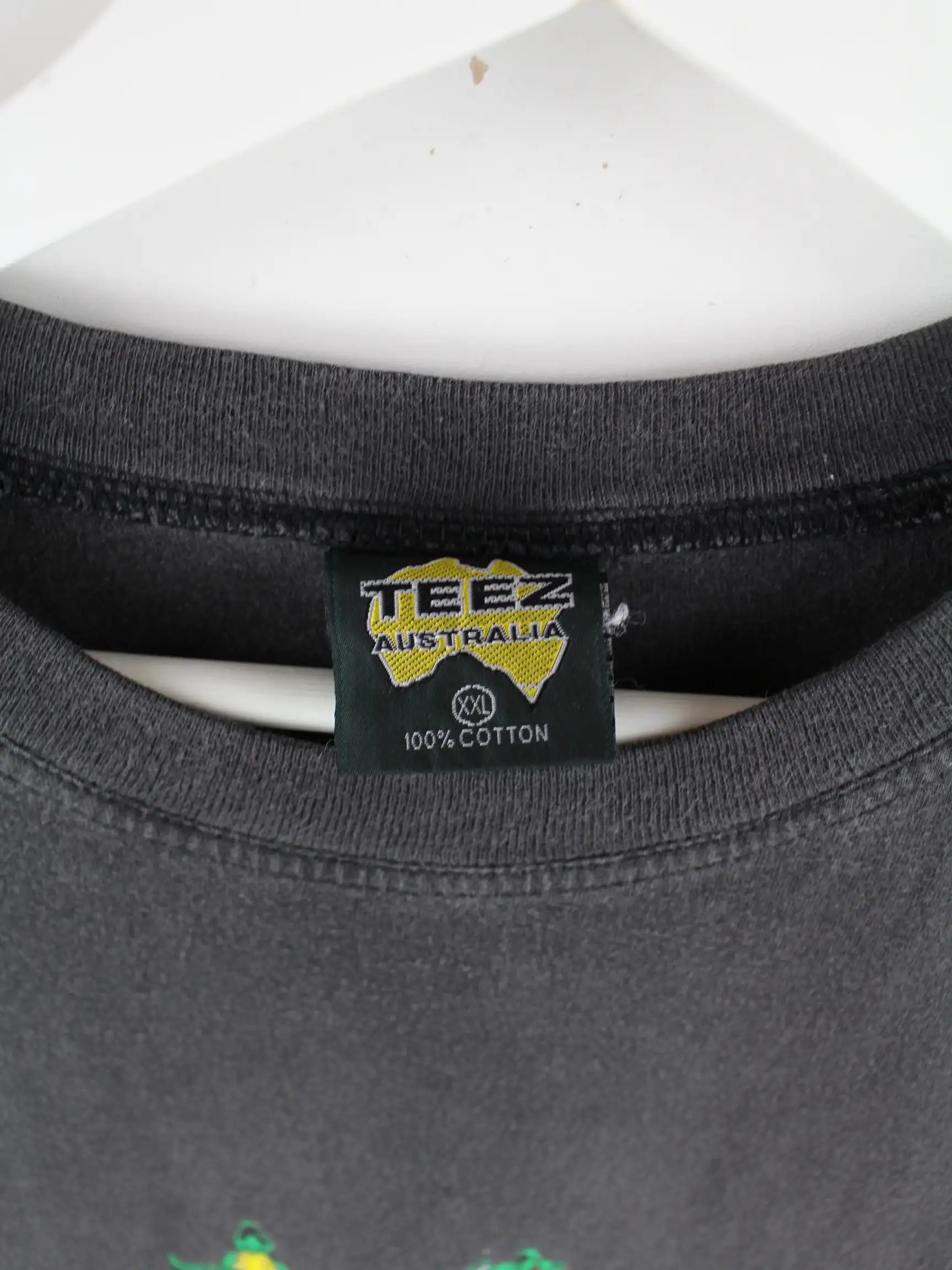 Vintage T-Shirt in Größe XL aus den 90'ern. Es ist aus Baumwolle gemacht und in Schwarz lieferbar. Mit schickem Crocodile Print.
