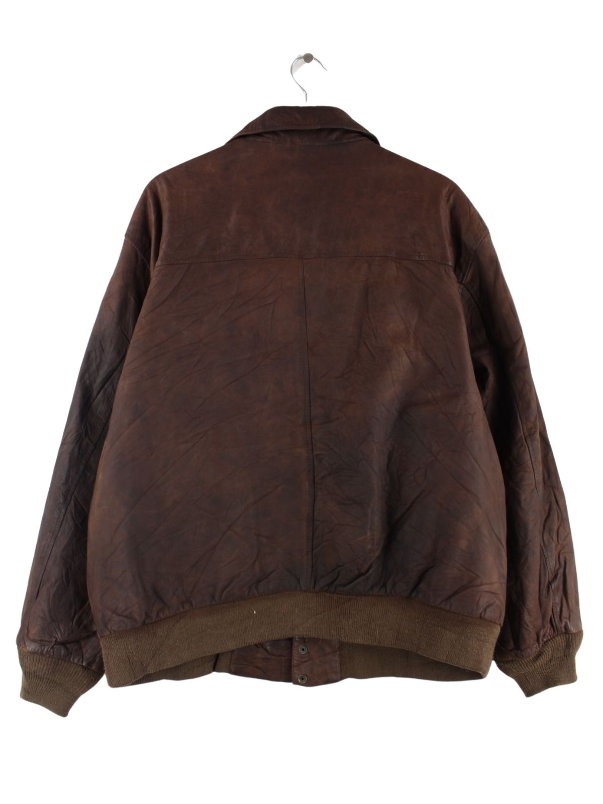 Vintage Jacke in Größe XL aus den 90'ern. Sie ist aus Leder angefertigt und in Braun im Bestand.