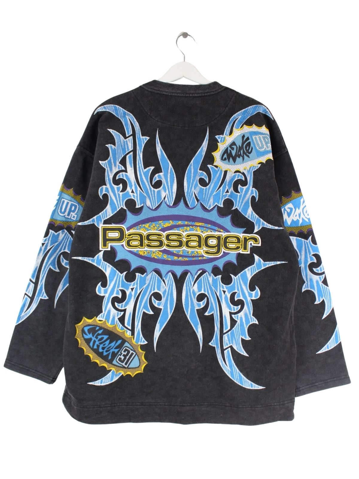 Vintage 90s Passager Print Sweater Grau XL