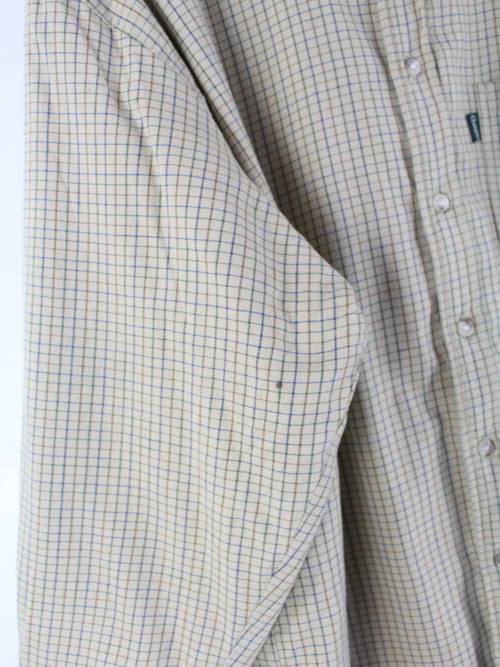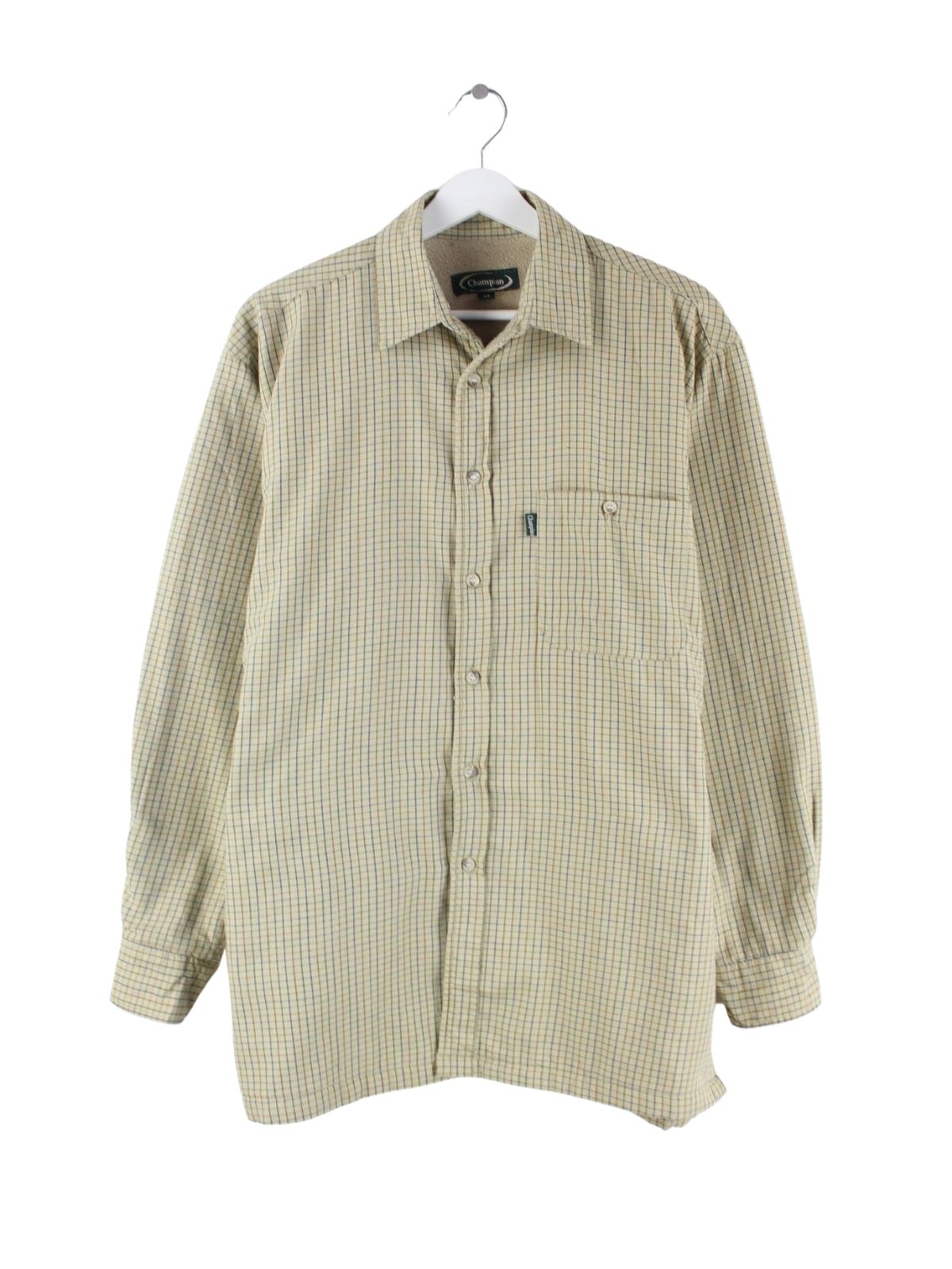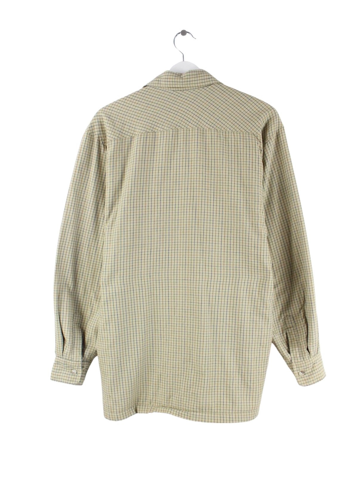 Beigefarbenes Vintage Freizeit Hemd aus den 90'ern in Größe M. Es ist aus einer Baumwollmischung angefertigt und in gutem Zustand zu bekommen.