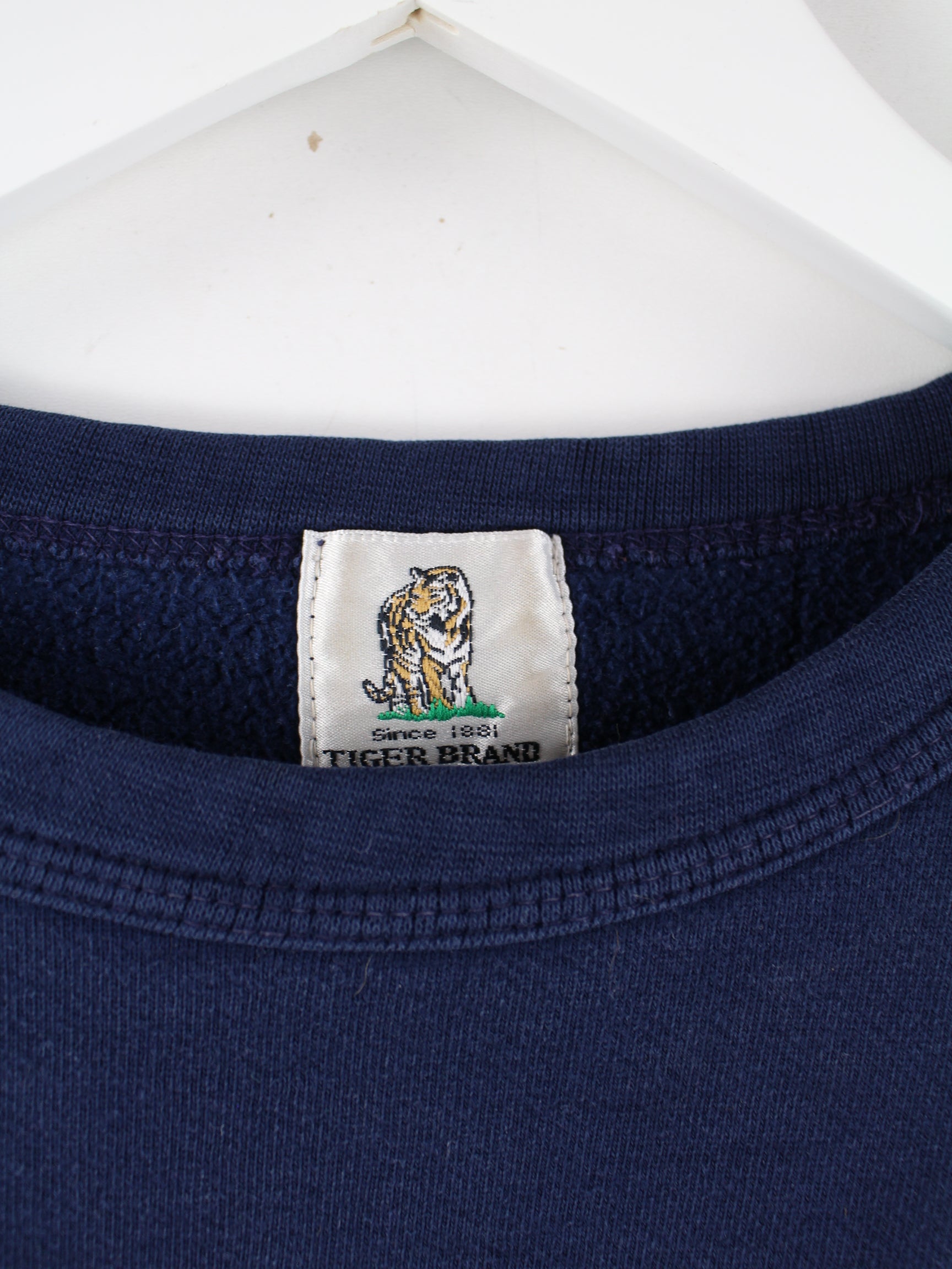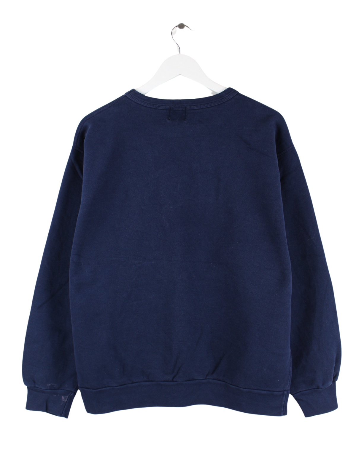 Blauer Vintage Sweater mit Stick aus den 90'ern in Größe L. Er ist aus einer Baumwollmischung gefertigt und in gutem Zustand vorrätig.