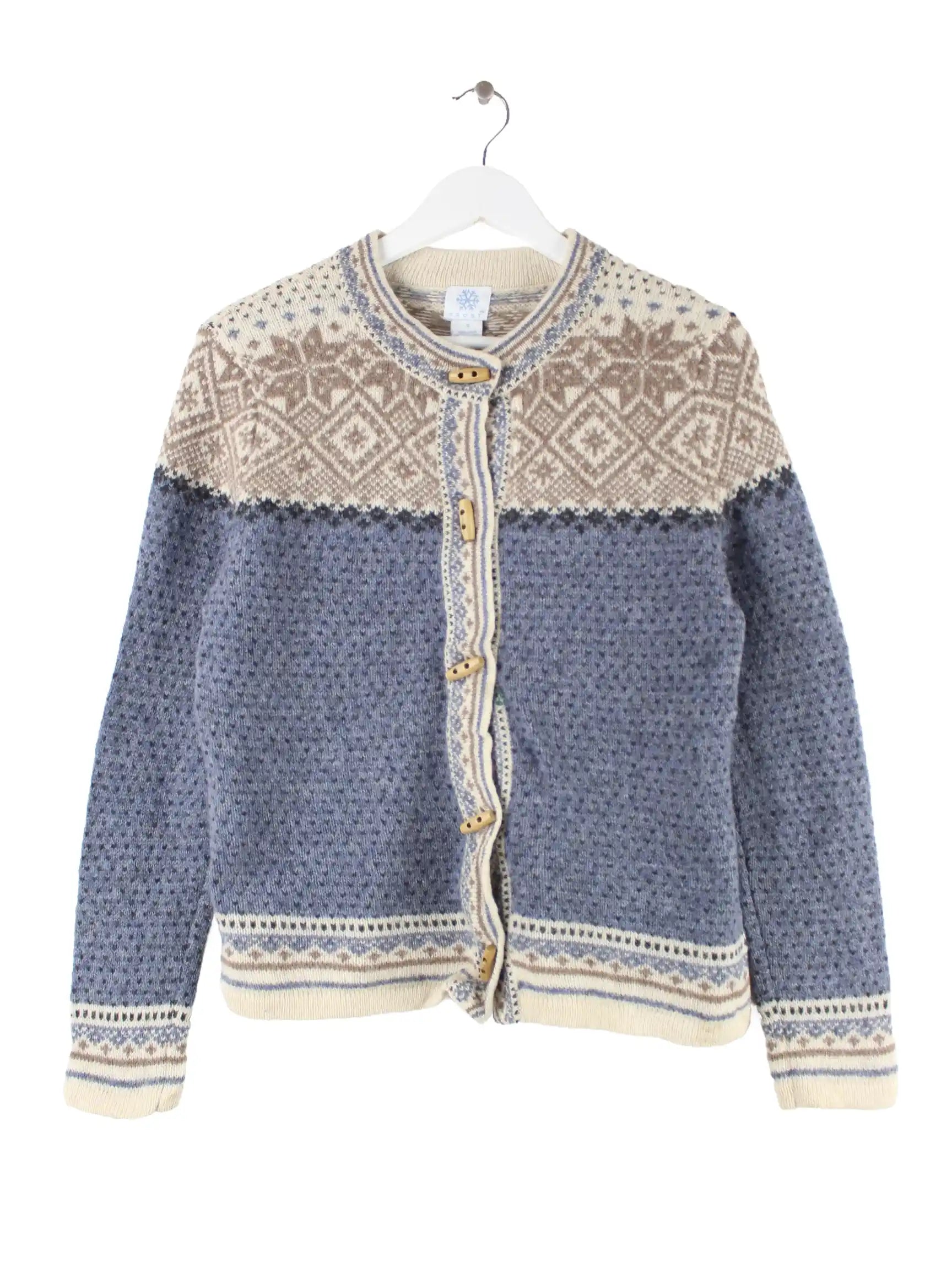 Vintage Damen 00s Pattern Woll Cardigan Strickjacke Blau S