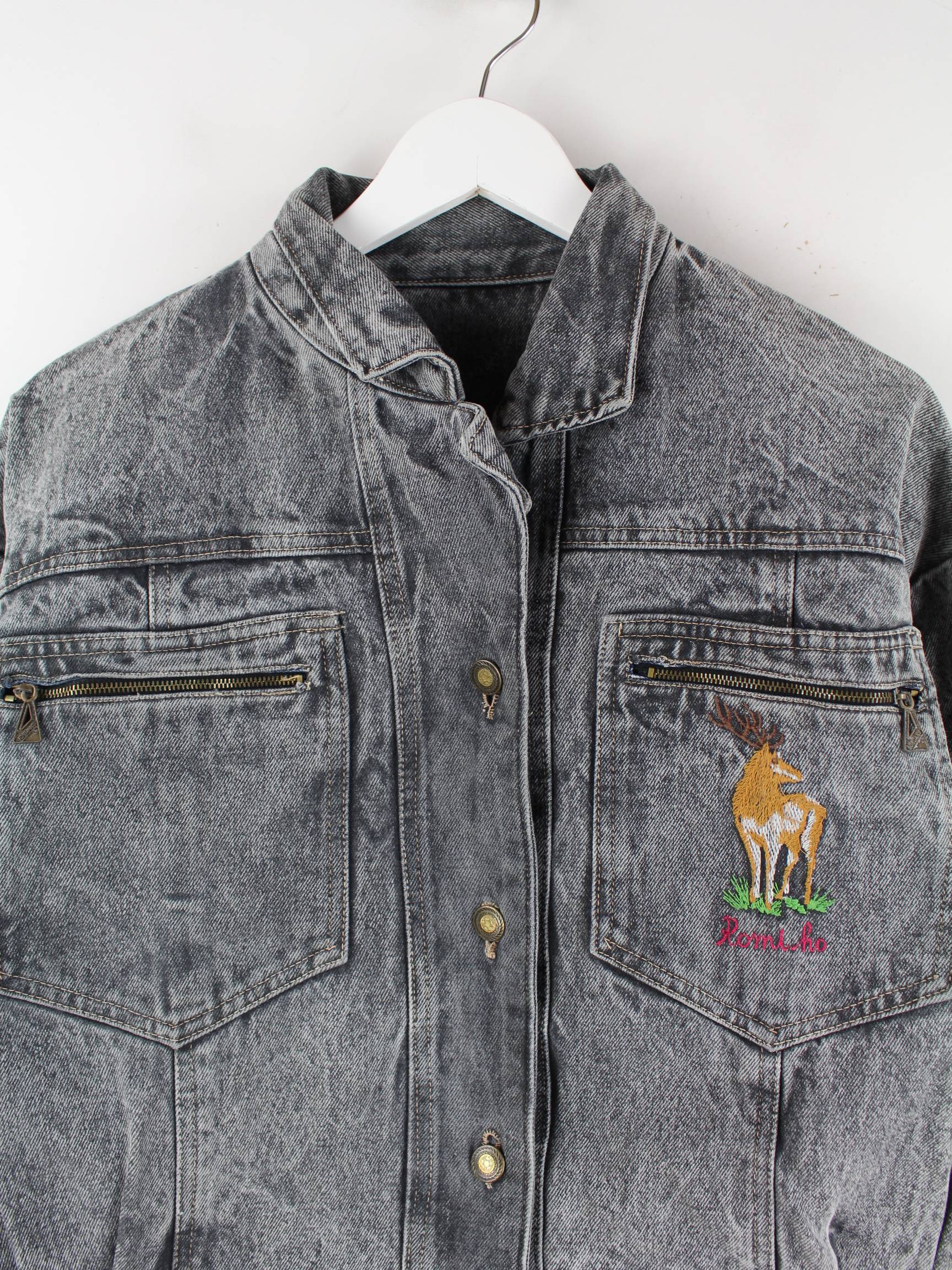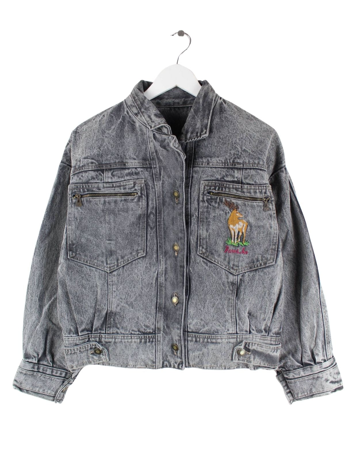 Vintage Damen 80s Embroidered Crop Jeans Jacke Grau M