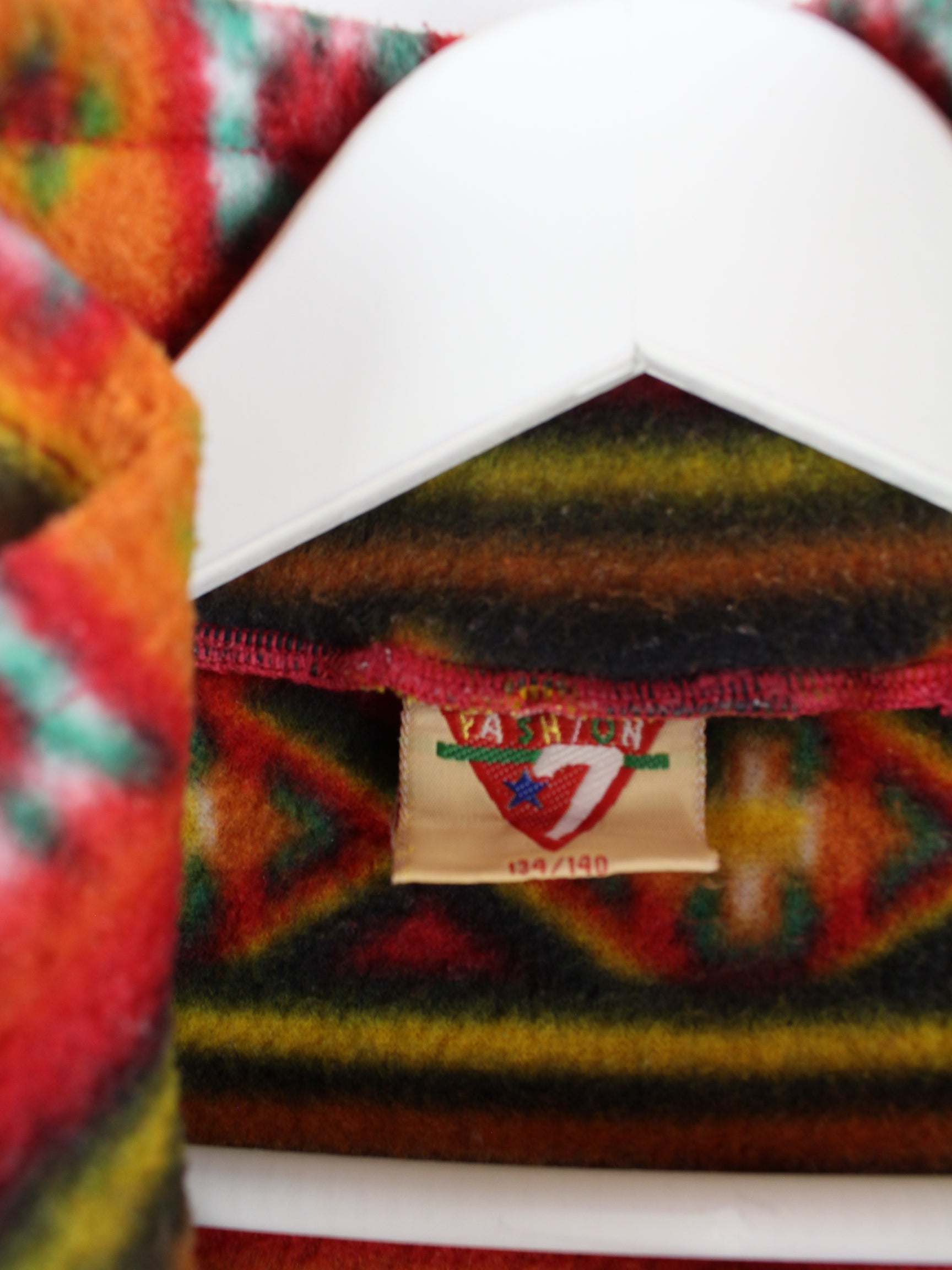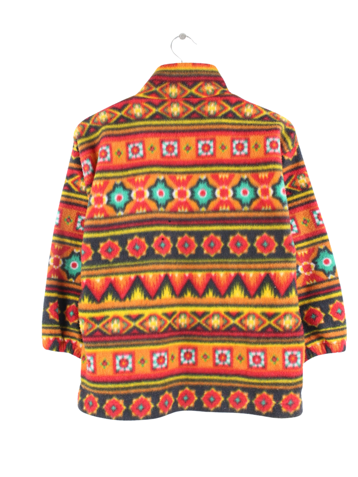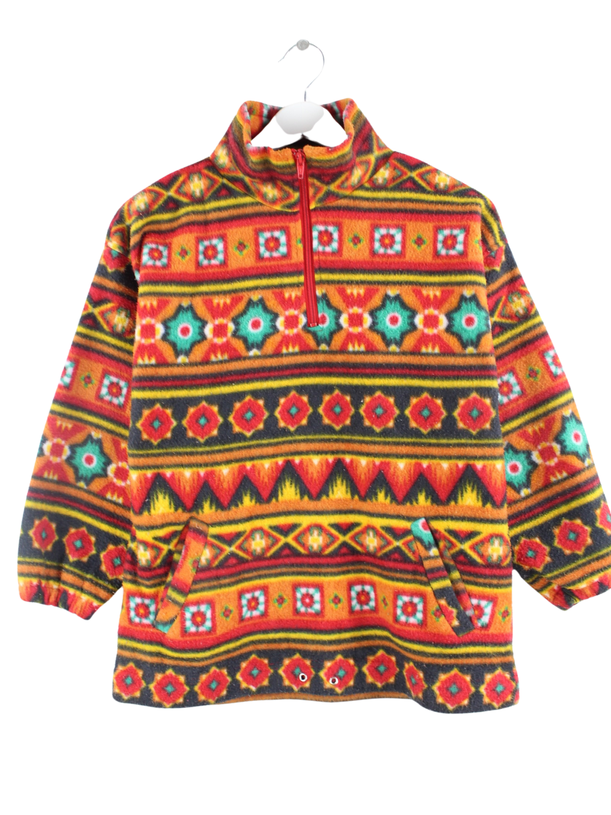 Multicolored vintage sweater with half zip from the 90's in size XXS. It is made of synthetic material and is available from us in good condition.
