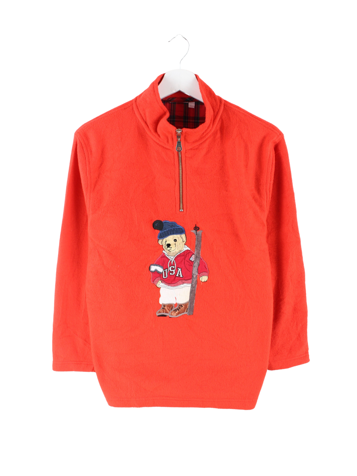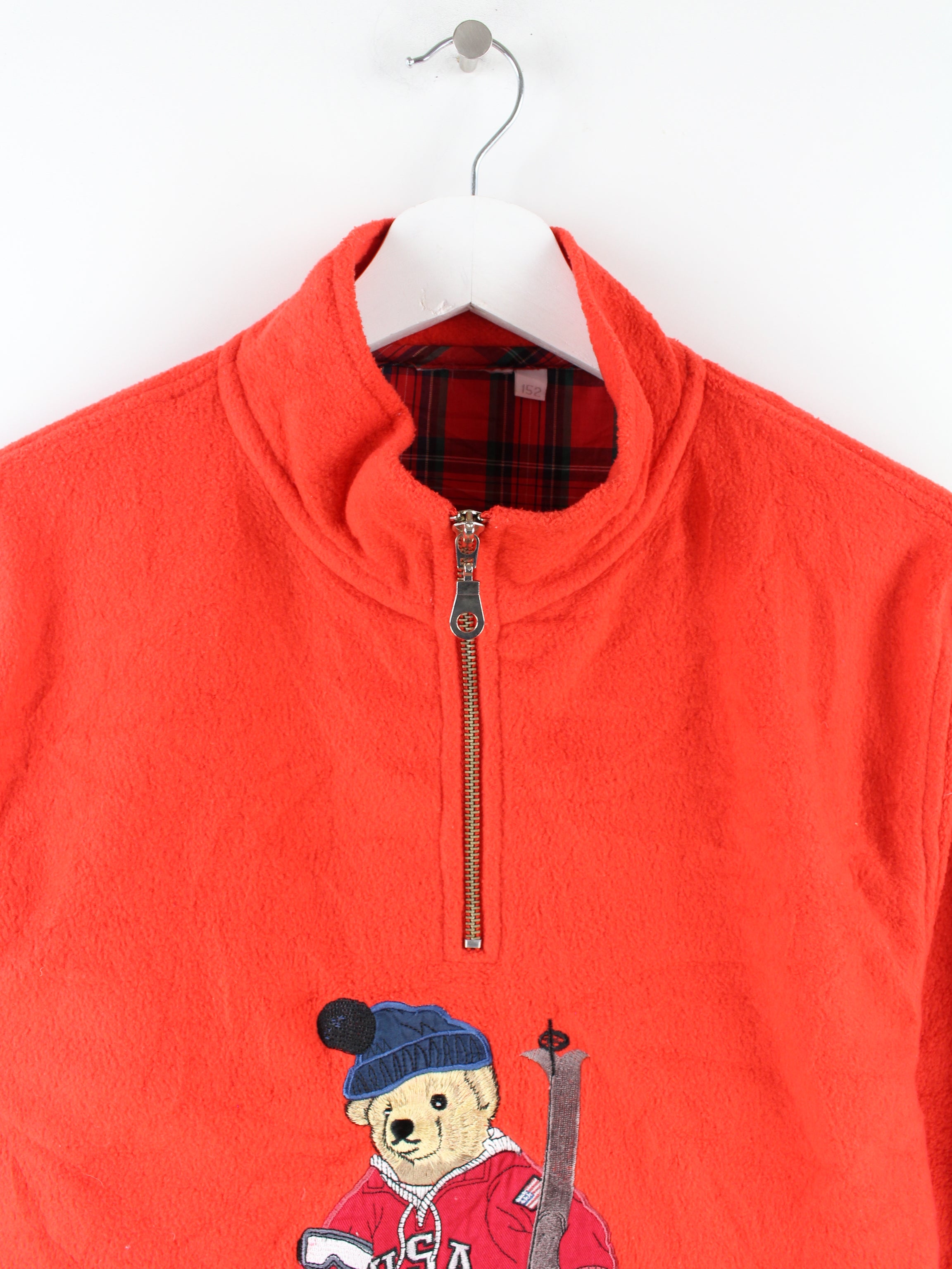 Vintage Ladies Bear Stick Zip Sweater Red XS