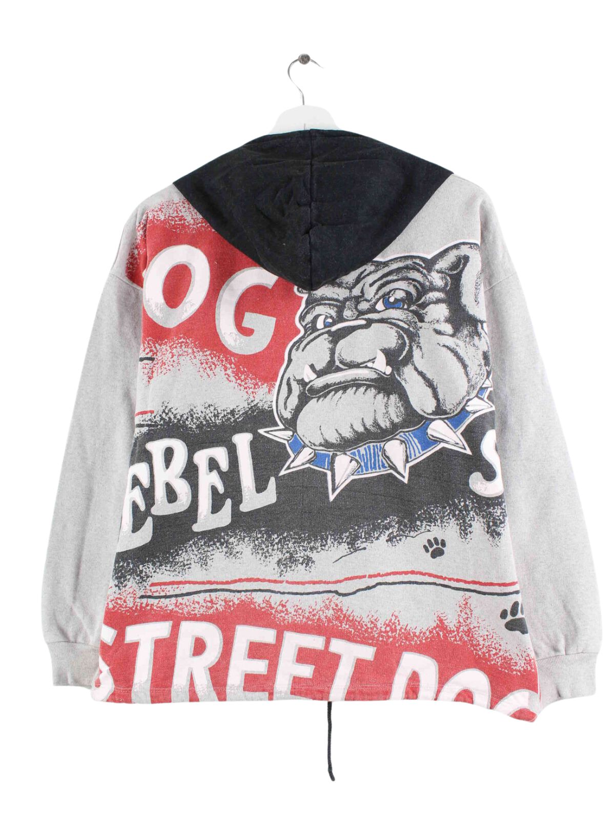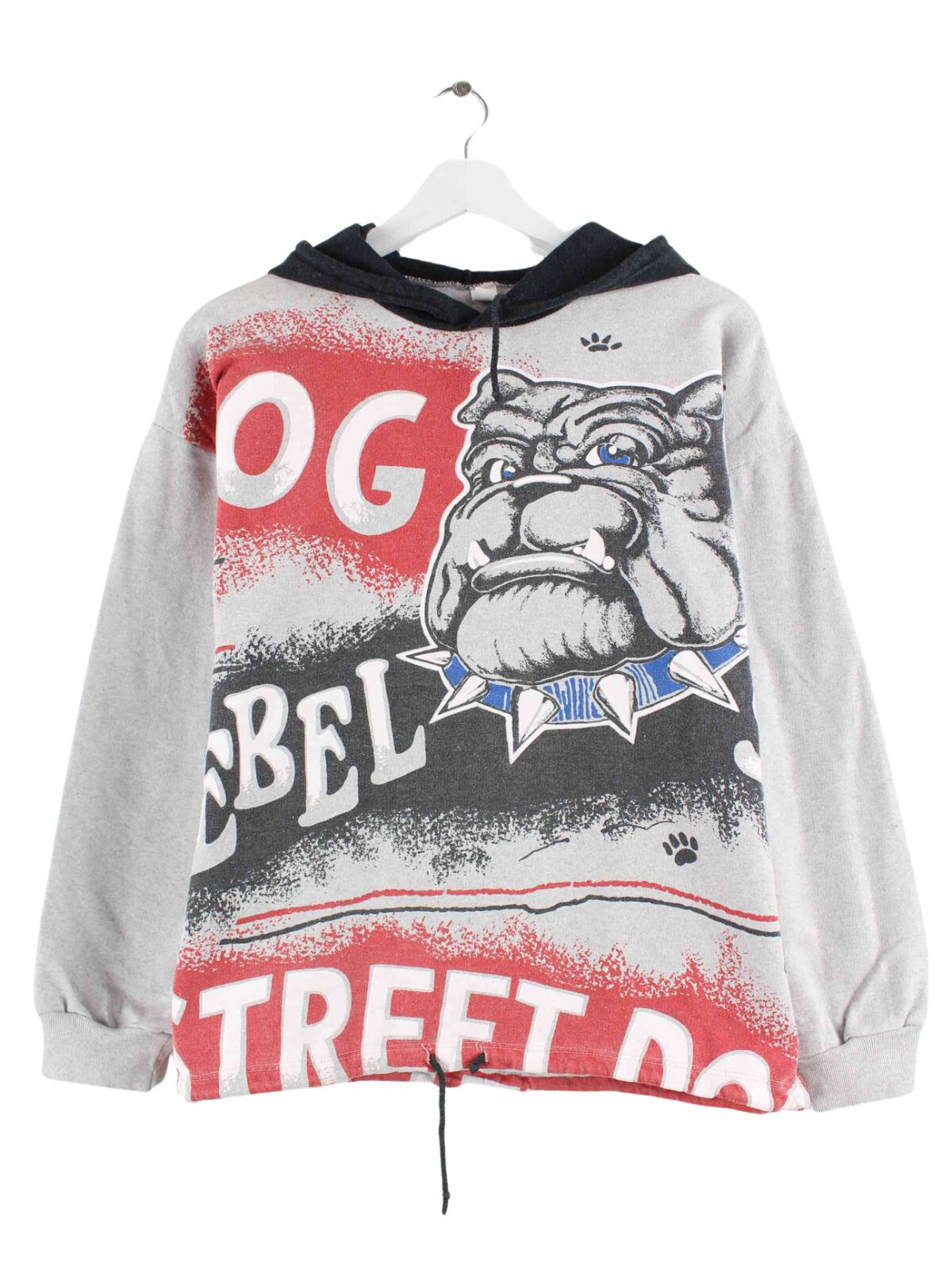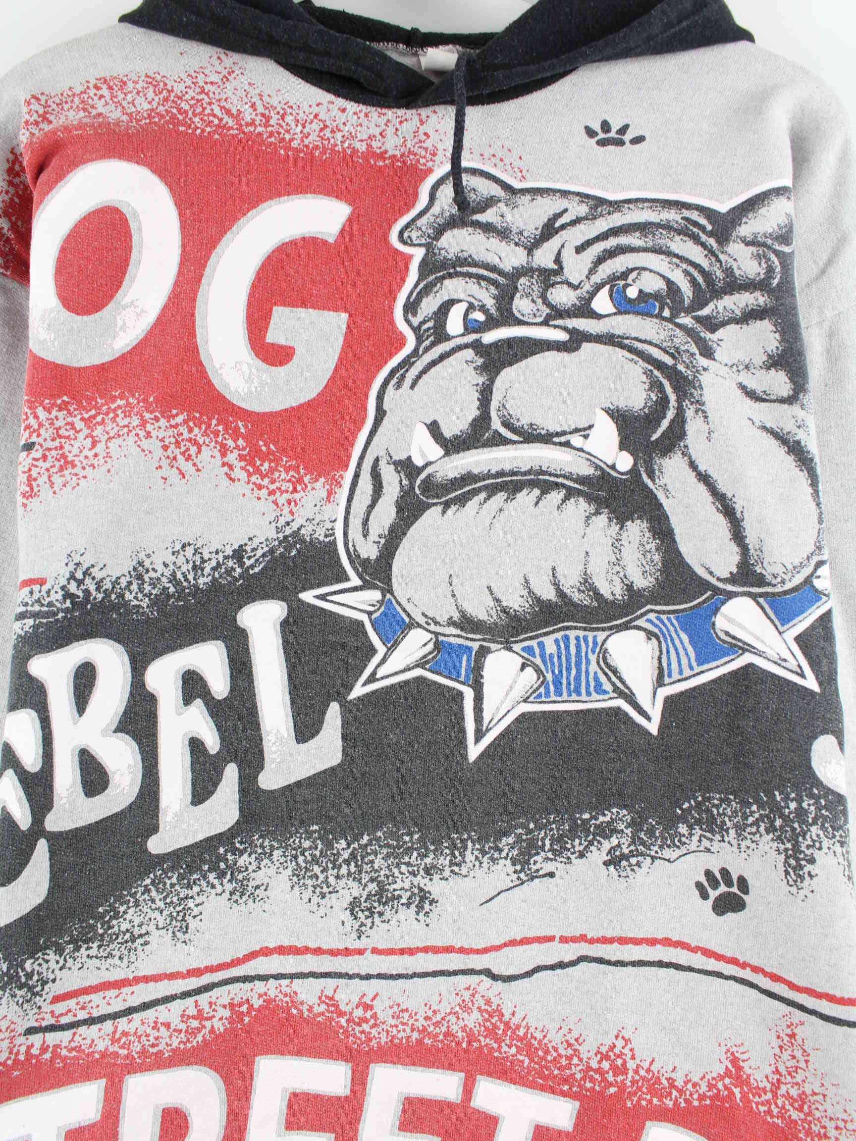 Vintage hoodie in size S. It is made of a cotton blend and is available in gray. With a beautiful bulldog print.
