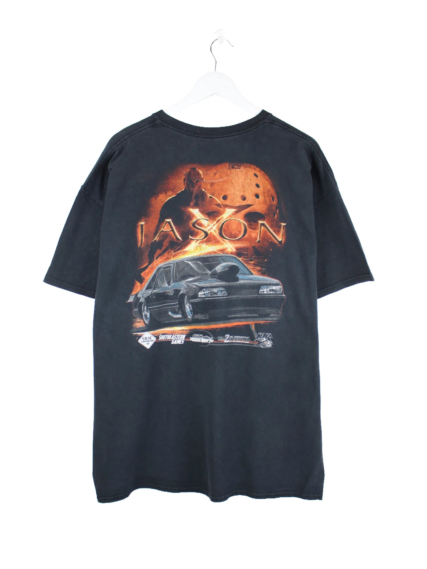 Vintage Jason X Racing Print Faded T-Shirt Schwarz XXL