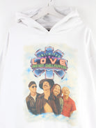 Vintage Hoodie in Größe XL. Er ist aus einer Baumwollmischung gemacht und in Weiß bei uns zu bekommen. Mit chiquem Tour Print.