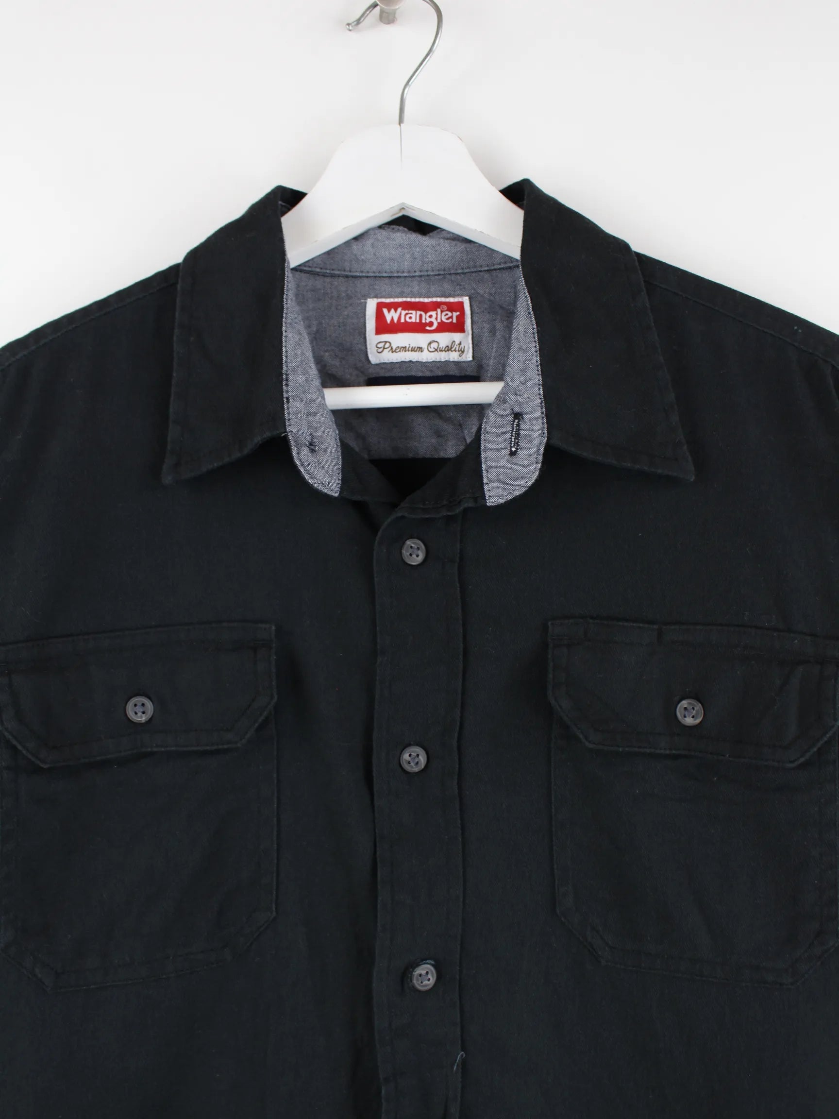 Schwarzes Freizeit Hemd der Marke Wrangler in Größe M. Es ist aus Baumwolle und in sehr gutem Zustand bei uns vorrätig.