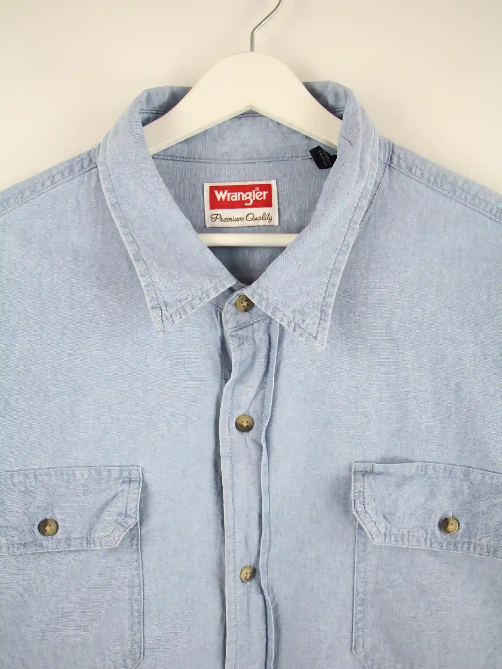 Blaues Freizeit Hemd des Labels Wrangler in Größe XXL. Es ist aus Baumwolle und in sehr gutem Zustand lieferbar.