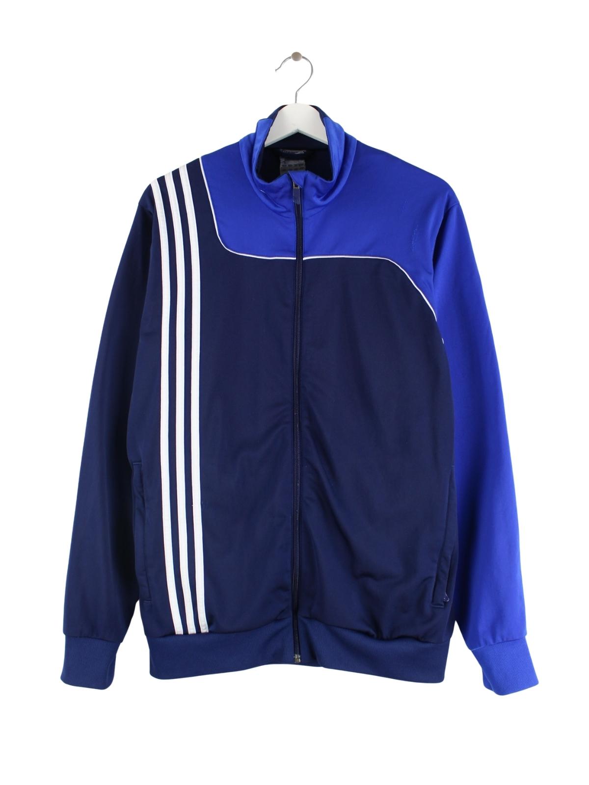 Trainingsjacke vom Brand Adidas in Größe M. Sie ist aus Synthetik angefertigt und in Blau im Bestand.