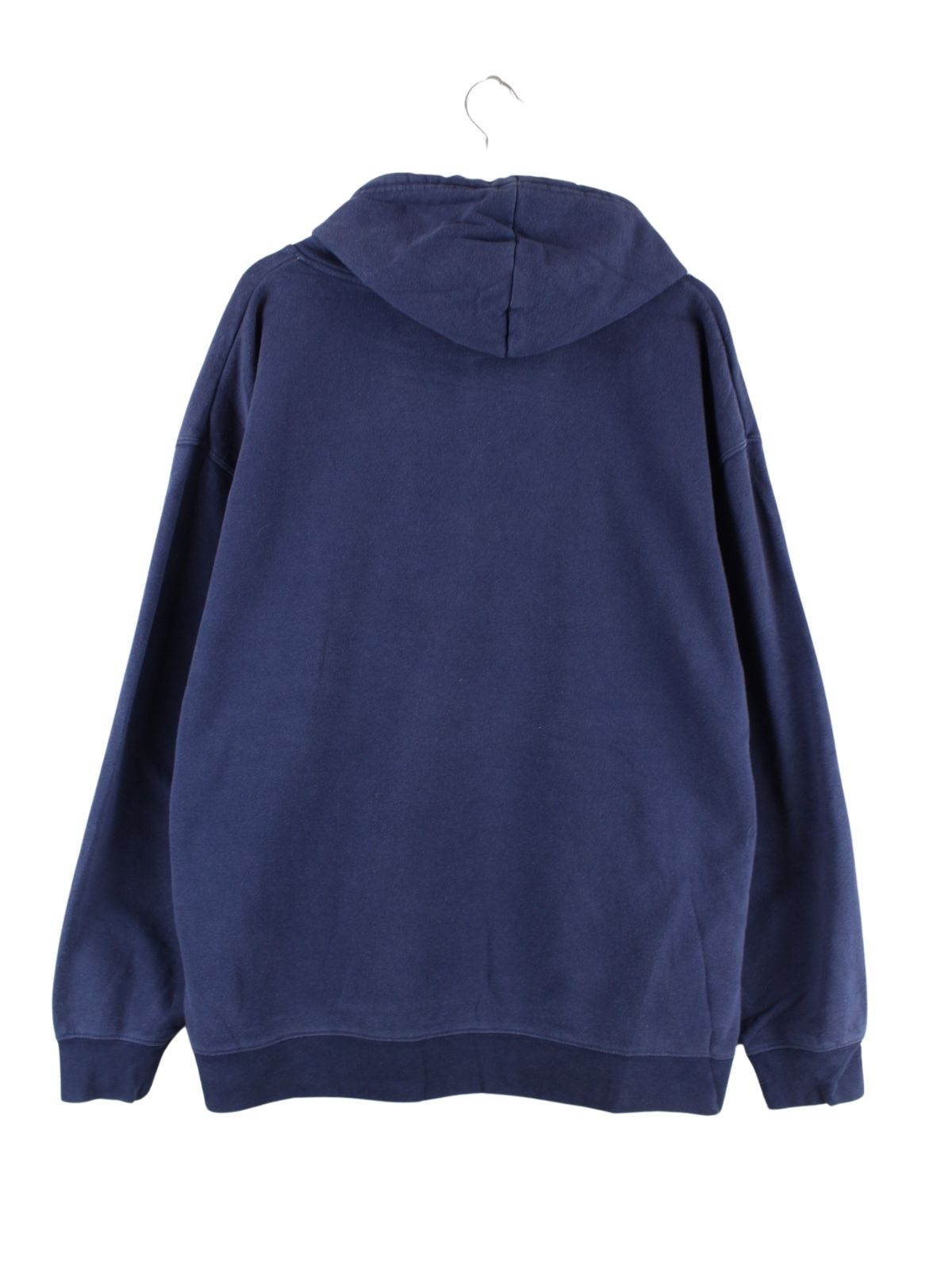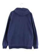 Blauer Hoodie mit gestickten Motiven von Champion in Größe XXL. Er ist aus einer Baumwollmischung und in sehr gutem Zustand bei uns vorrätig.