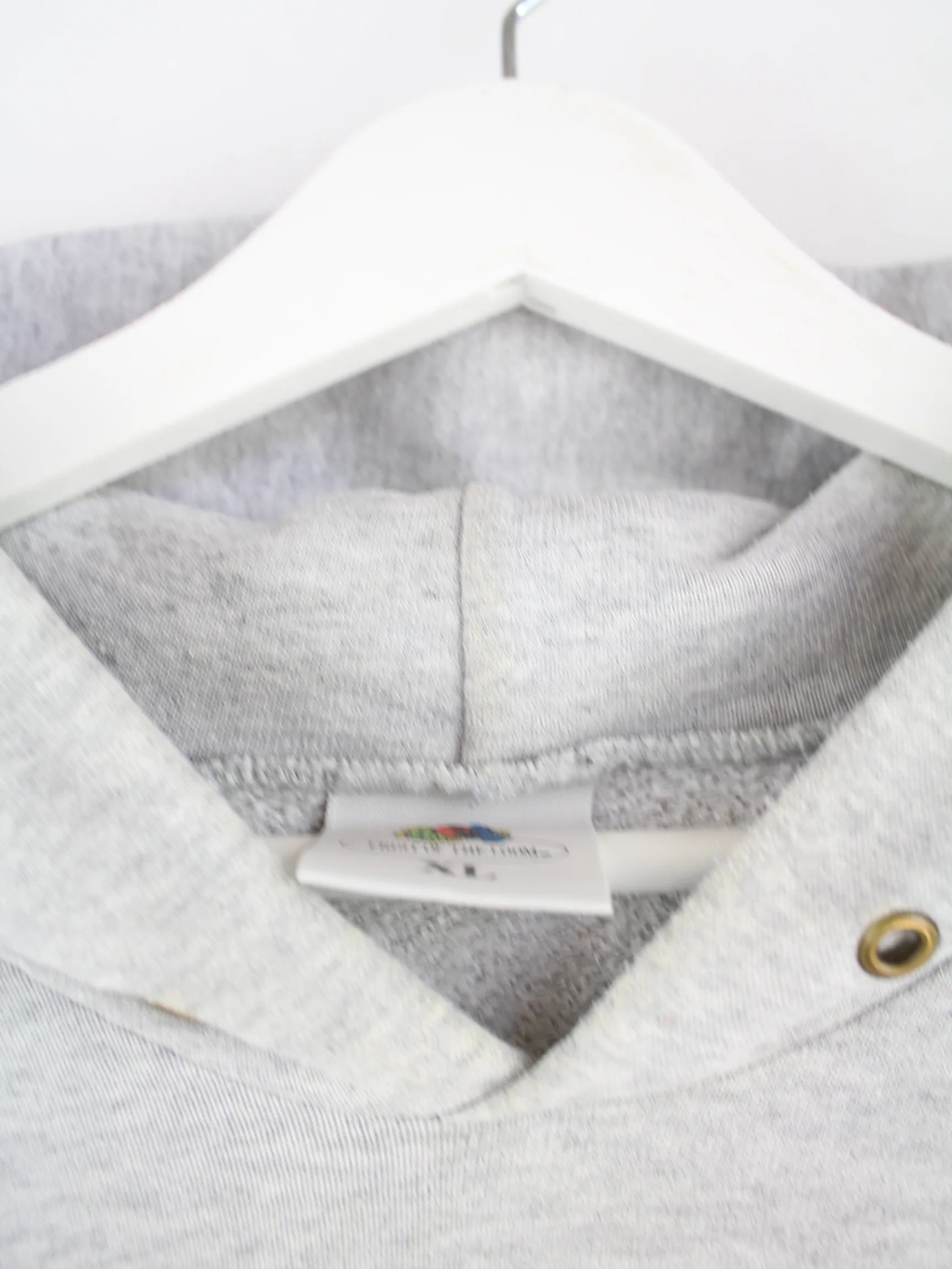 Grauer Hoodie vom Label Fruit of the Loom in Größe XL. Er ist aus einer Baumwollmischung produziert. Den Zustand würden wir als 'In Ordnung' bezeichnen (vergl. Bilder).