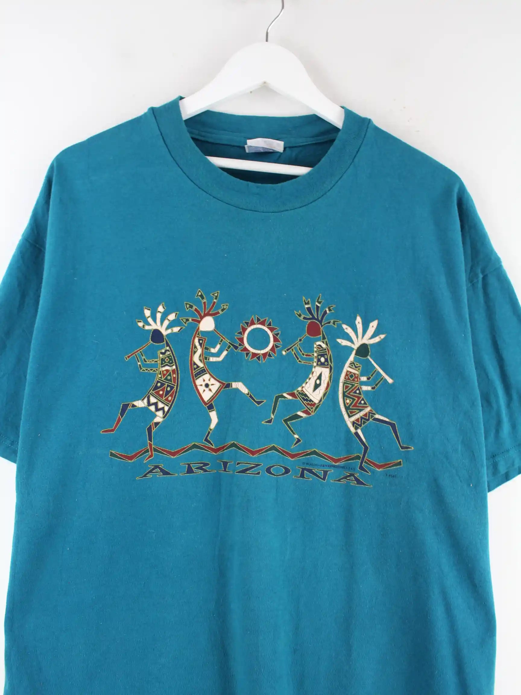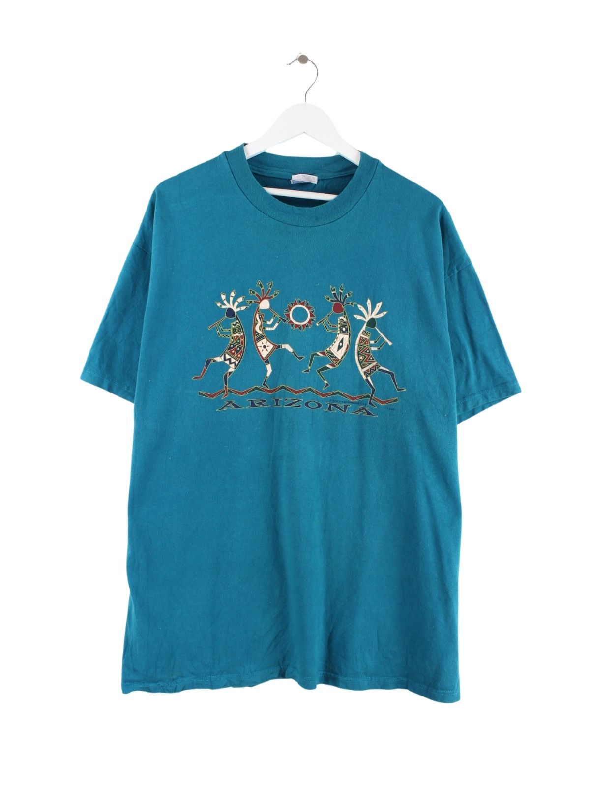 T-Shirt vom Label Hanes in Größe XL. Es ist aus einer Baumwollmischung produziert und in Grün in Stock. Mit schickem Arizona Print.