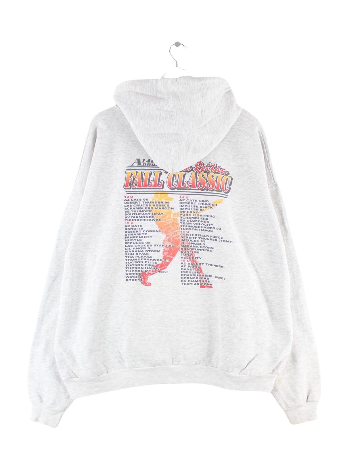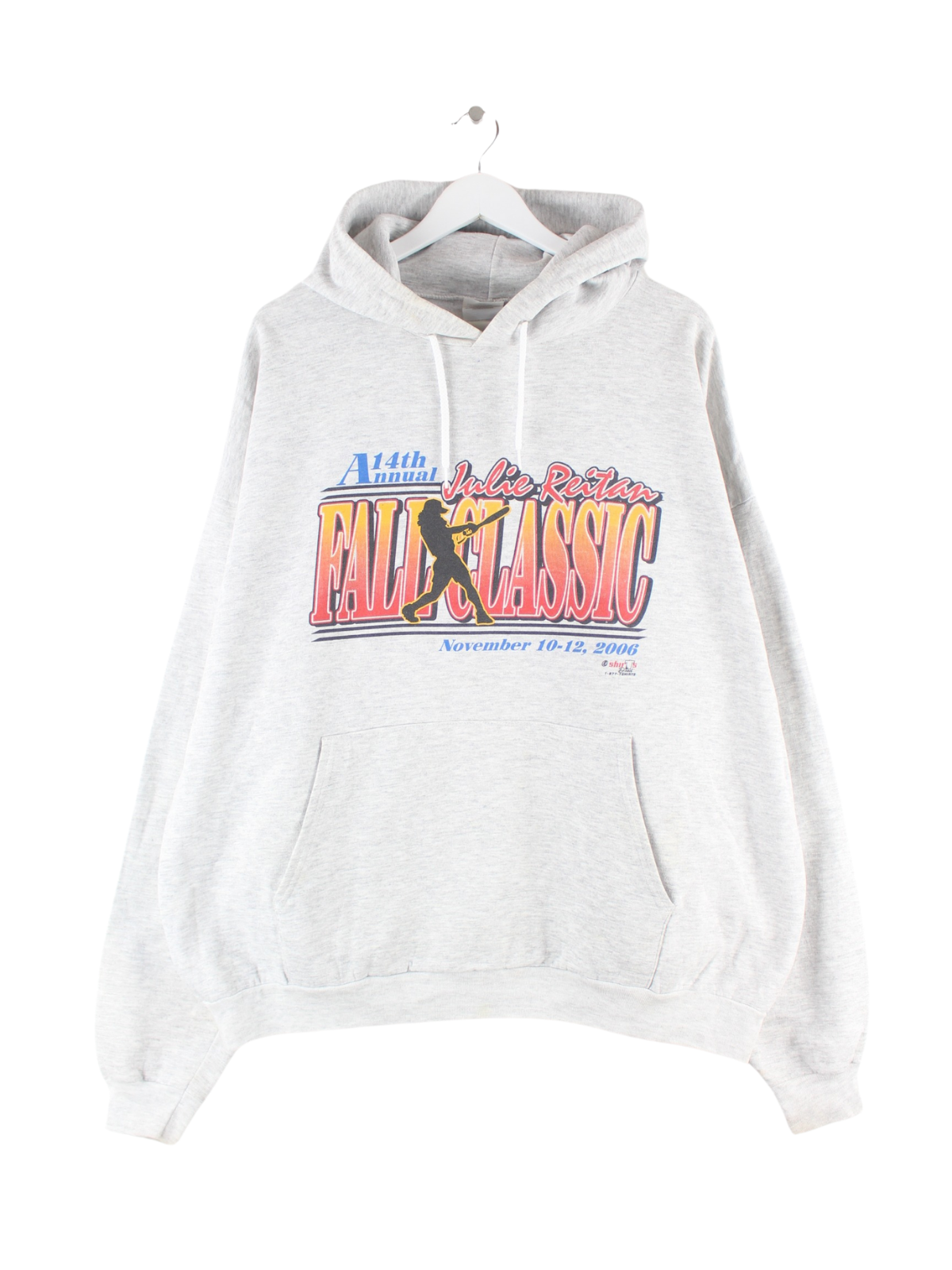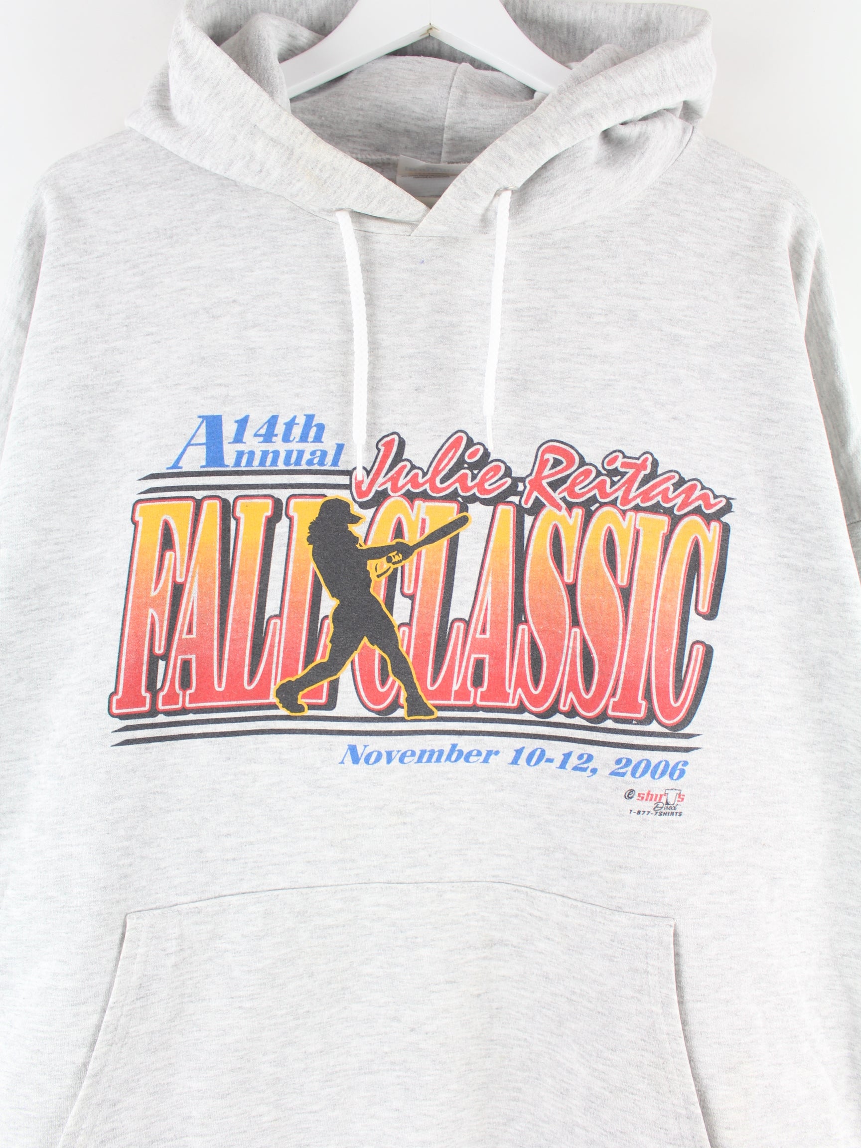 Hoodie aus dem Hause Hanes in Größe XXL. Er ist aus einer Baumwollmischung hergestellt und in Grau bei uns vorrätig. Mit seltenem Baseball Print.