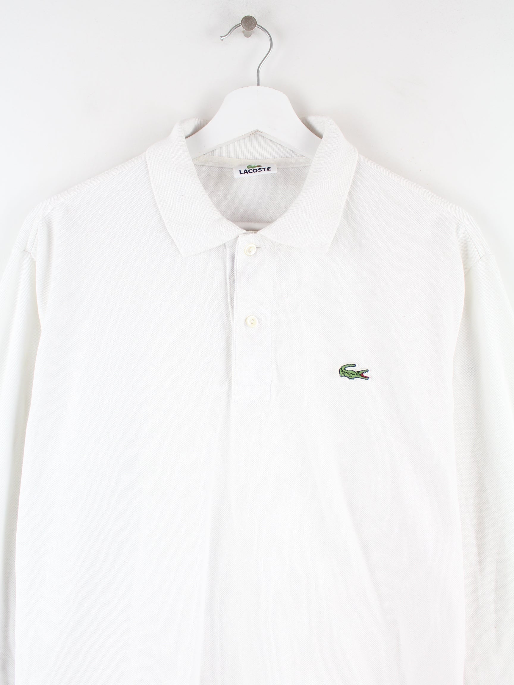 Poloshirt vom Label Lacoste in Größe M. Es ist aus Baumwolle hergestellt und in Weiß zu haben.