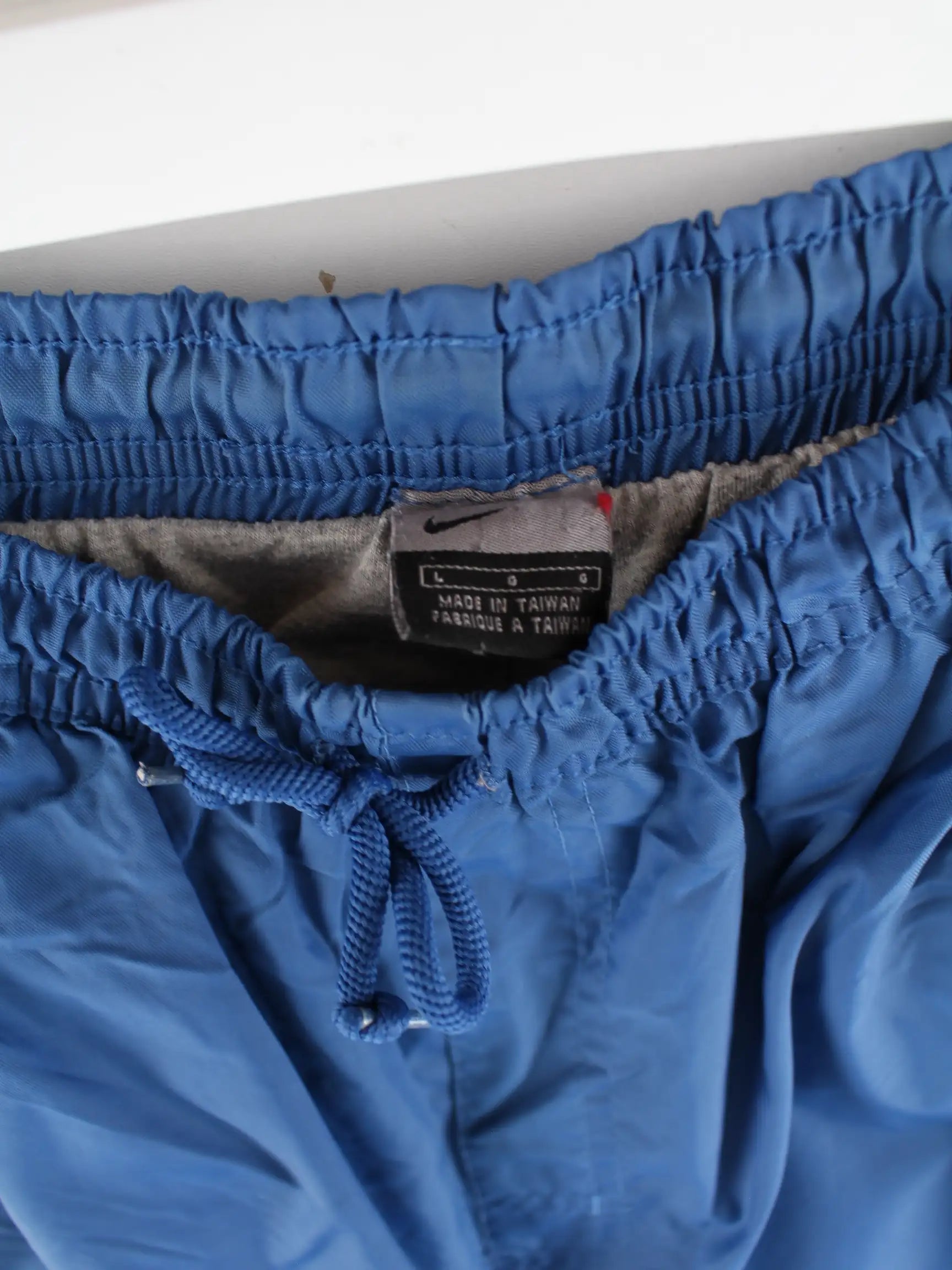 Blaue Track Pants der Marke Nike in Größe L. Sie sind aus Synthetik gefertigt und in gutem Zustand im Angebot.