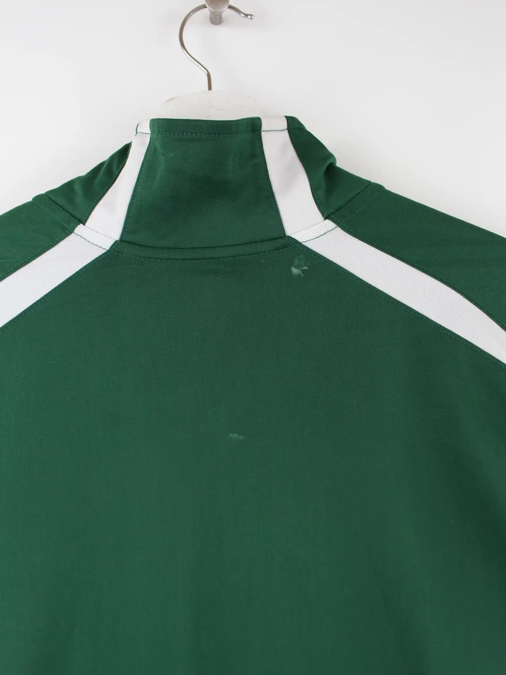 Grüne Trainingsjacke des Labels Nike in Größe L. Sie ist aus Synthetik hergestellt und in gutem Zustand im Bestand.