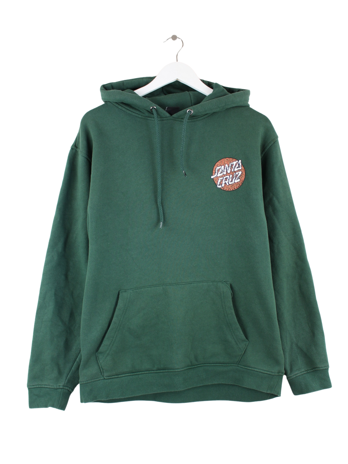 Grüner Hoodie vom Label Santa Cruz in Größe L. Er ist aus einer Baumwollmischung gemacht und in sehr gutem Zustand bei uns vorrätig. Mit tollem Print.