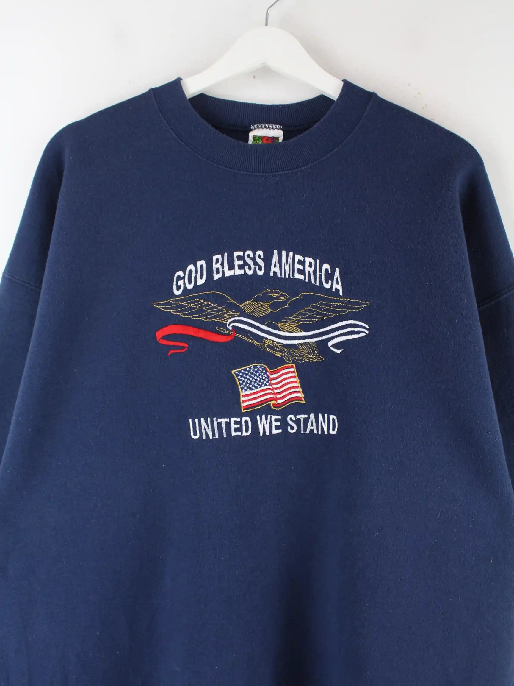 Fruit of the Loom 90s Vintage America Embroidered Sweater Blau XL
