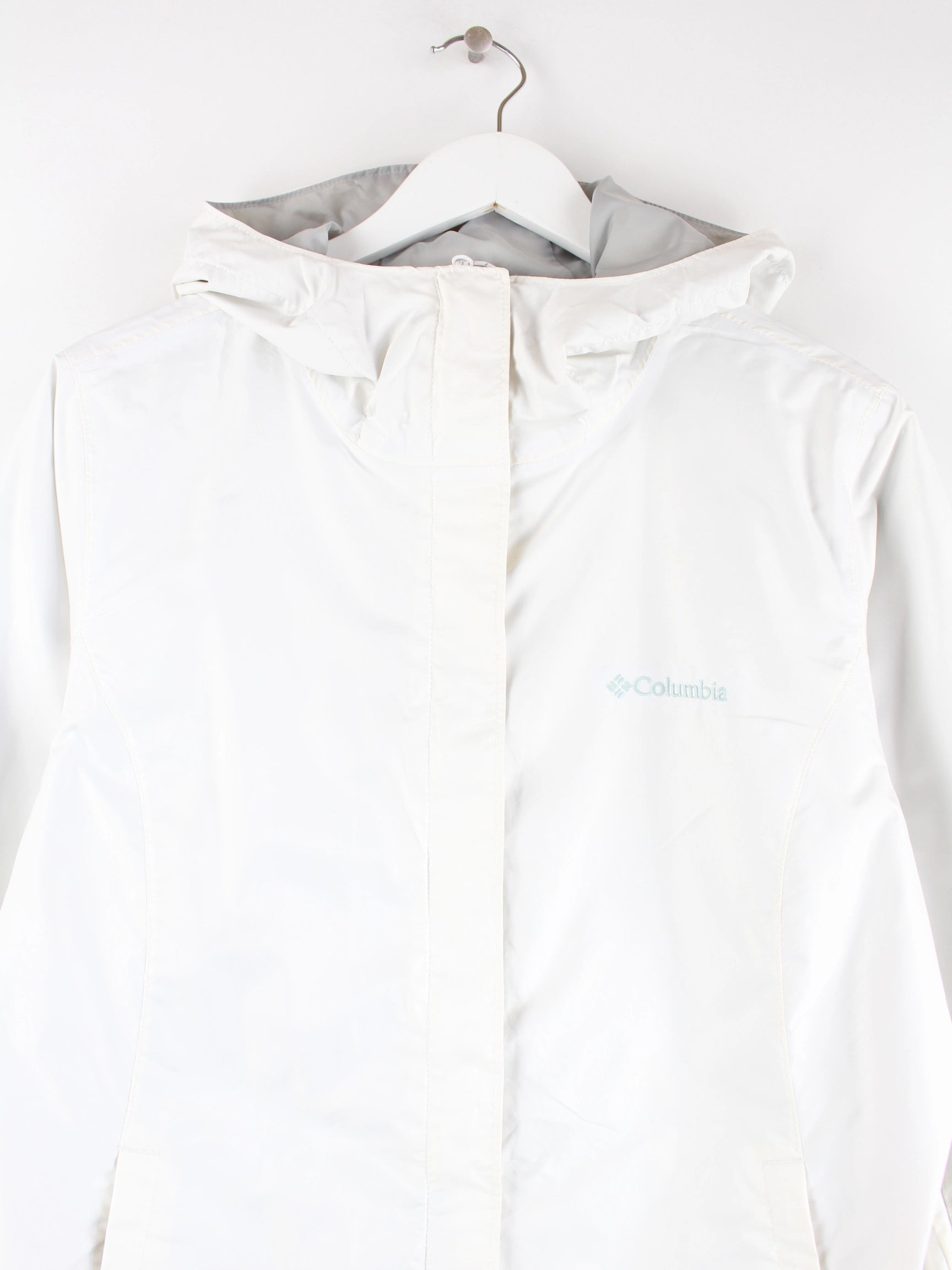 Weiße Leichte Jacke der Marke Columbia in Größe L. Sie ist aus Synthetik gemacht und in gutem Zustand im Angebot.