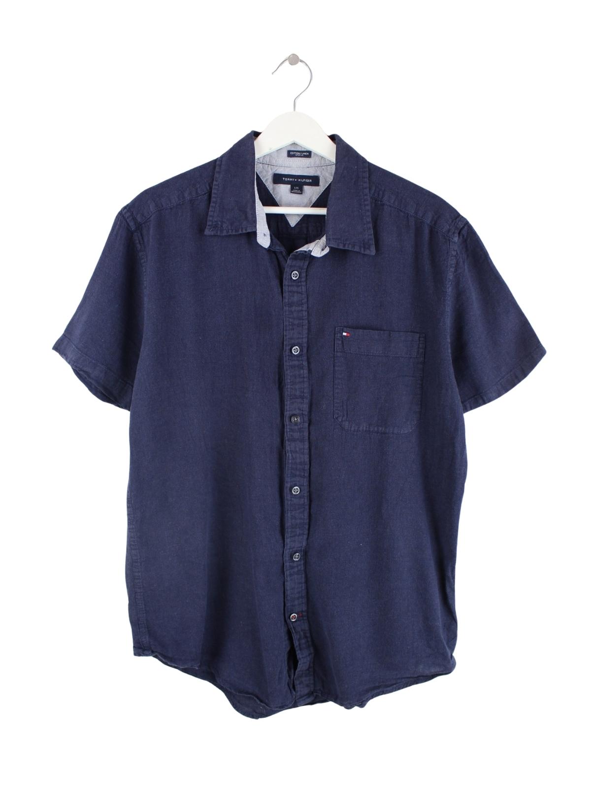 Tommy Hilfiger Cotton / Linen Kurzarm Hemd Blau L