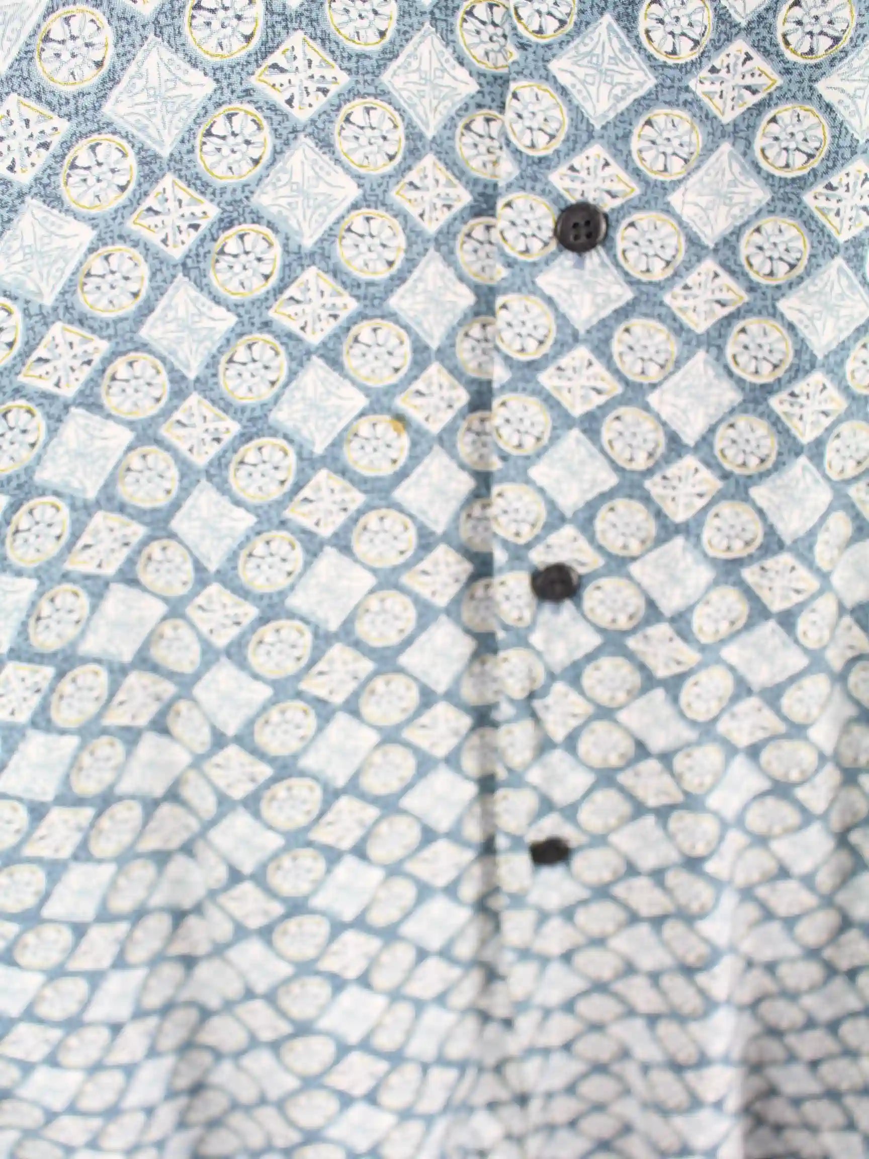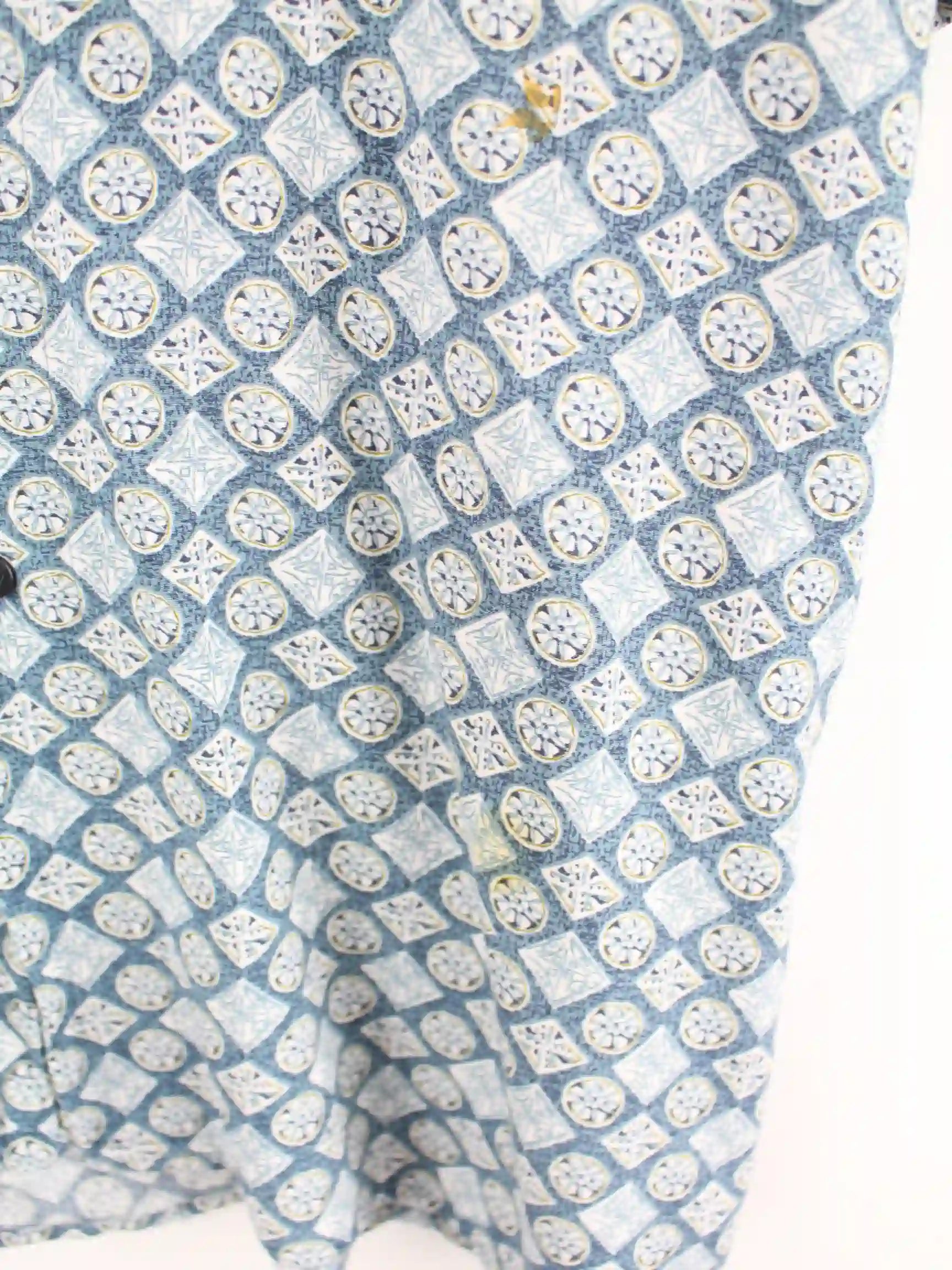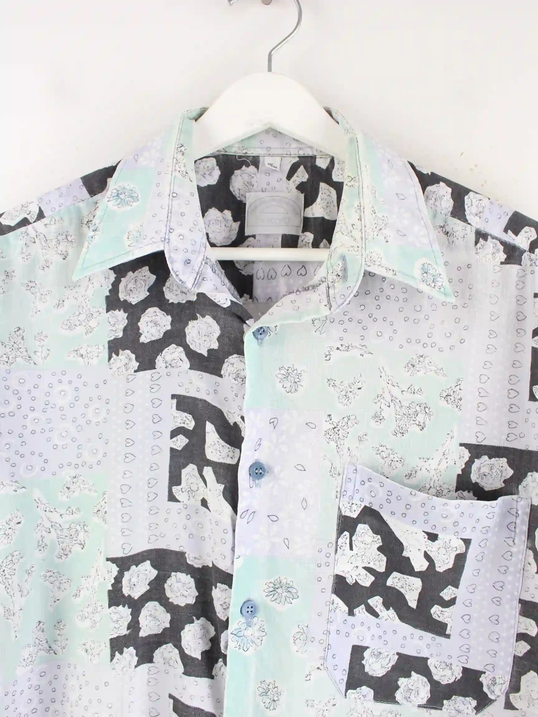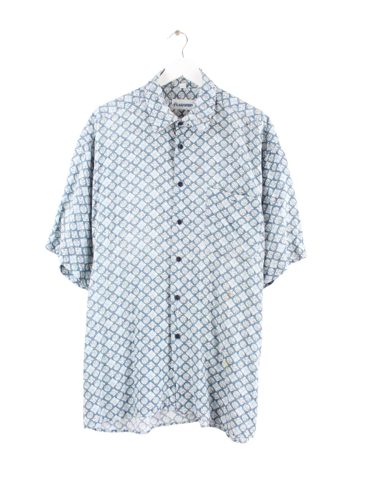 Vintage Crazy Pattern Kurzarm Hemd Blau L