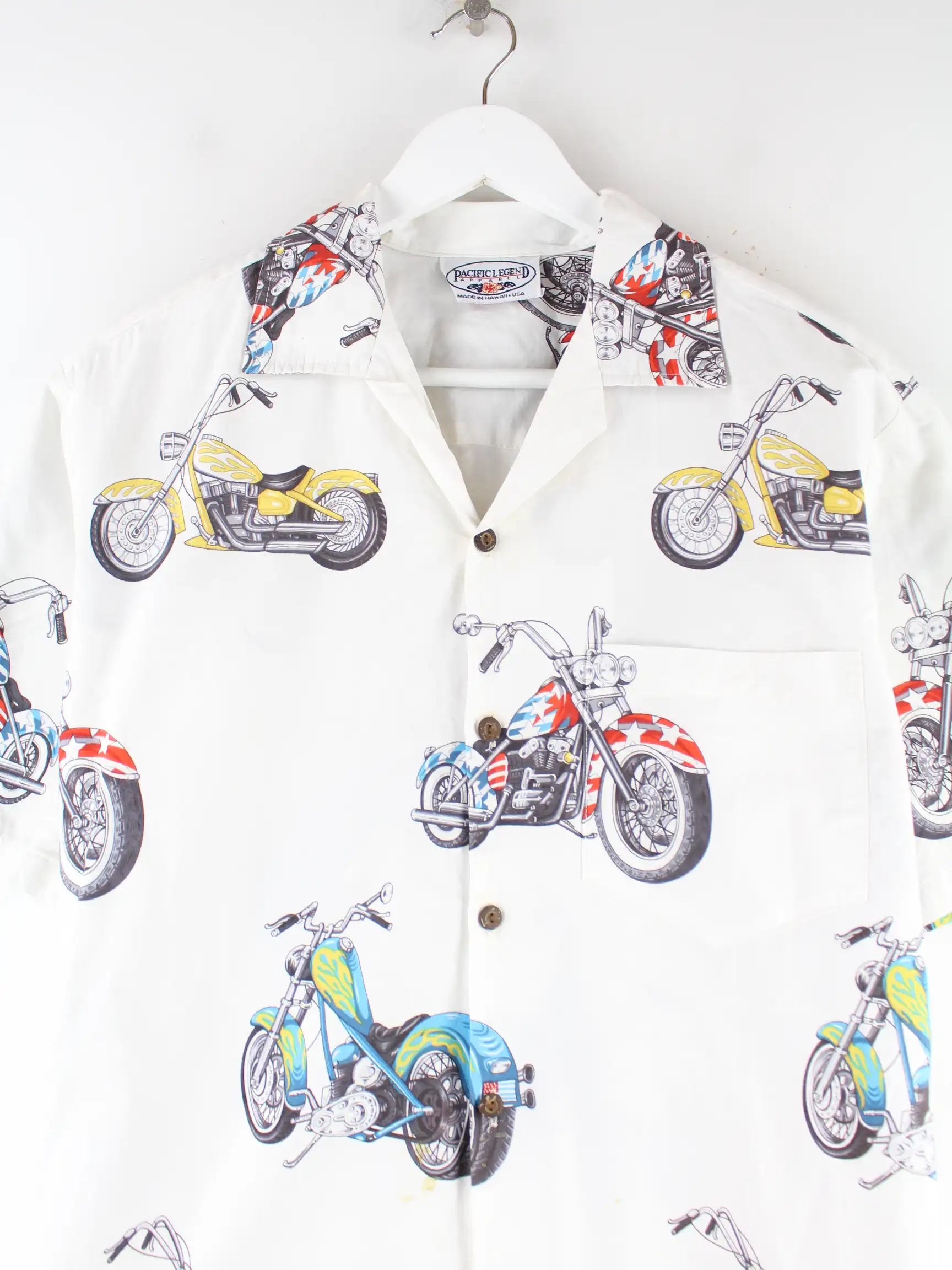 Vintage 90s Biker Print Kurzarm Hemd Weiß M