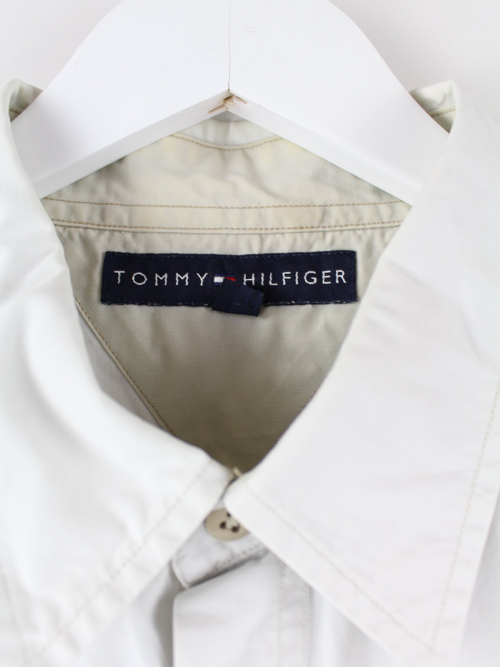 Freizeit Hemd der Marke Tommy Hilfiger in Größe L. Es ist aus Baumwolle gefertigt und in Beige zu bekommen.