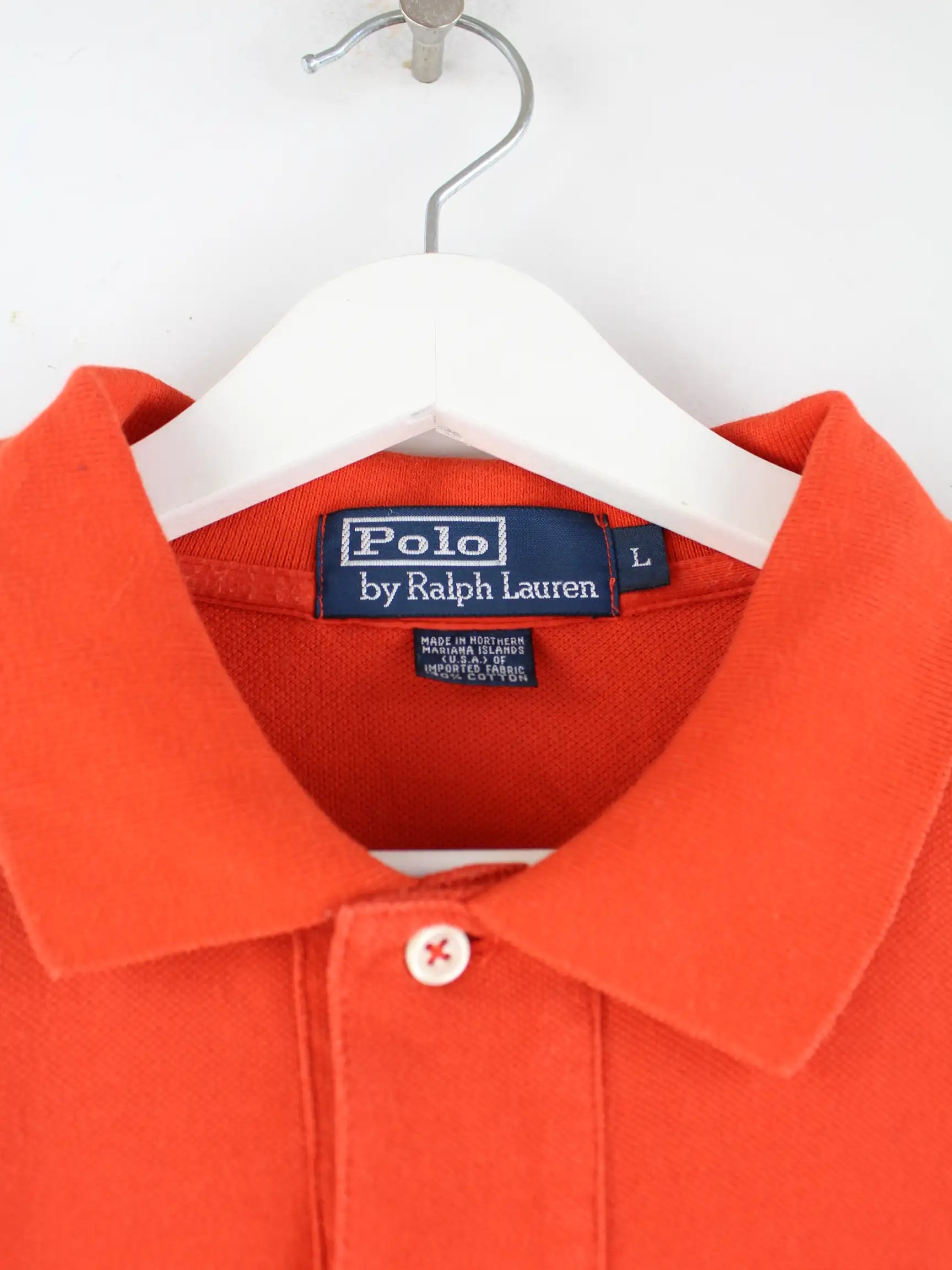 Ralph Lauren 90s Vintage Langarm Polo Orange XXL