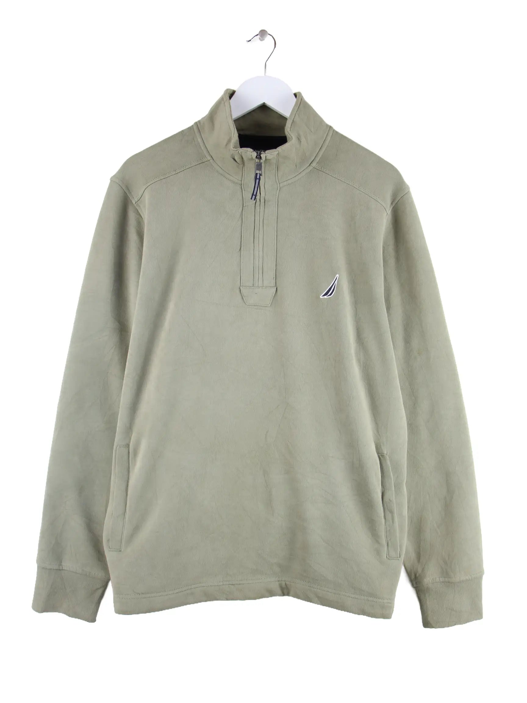 Grüner Sweater mit half Zip vom Label Nautica in Größe L. Er ist aus einer Baumwollmischung gemacht und in gutem Zustand im Bestand.