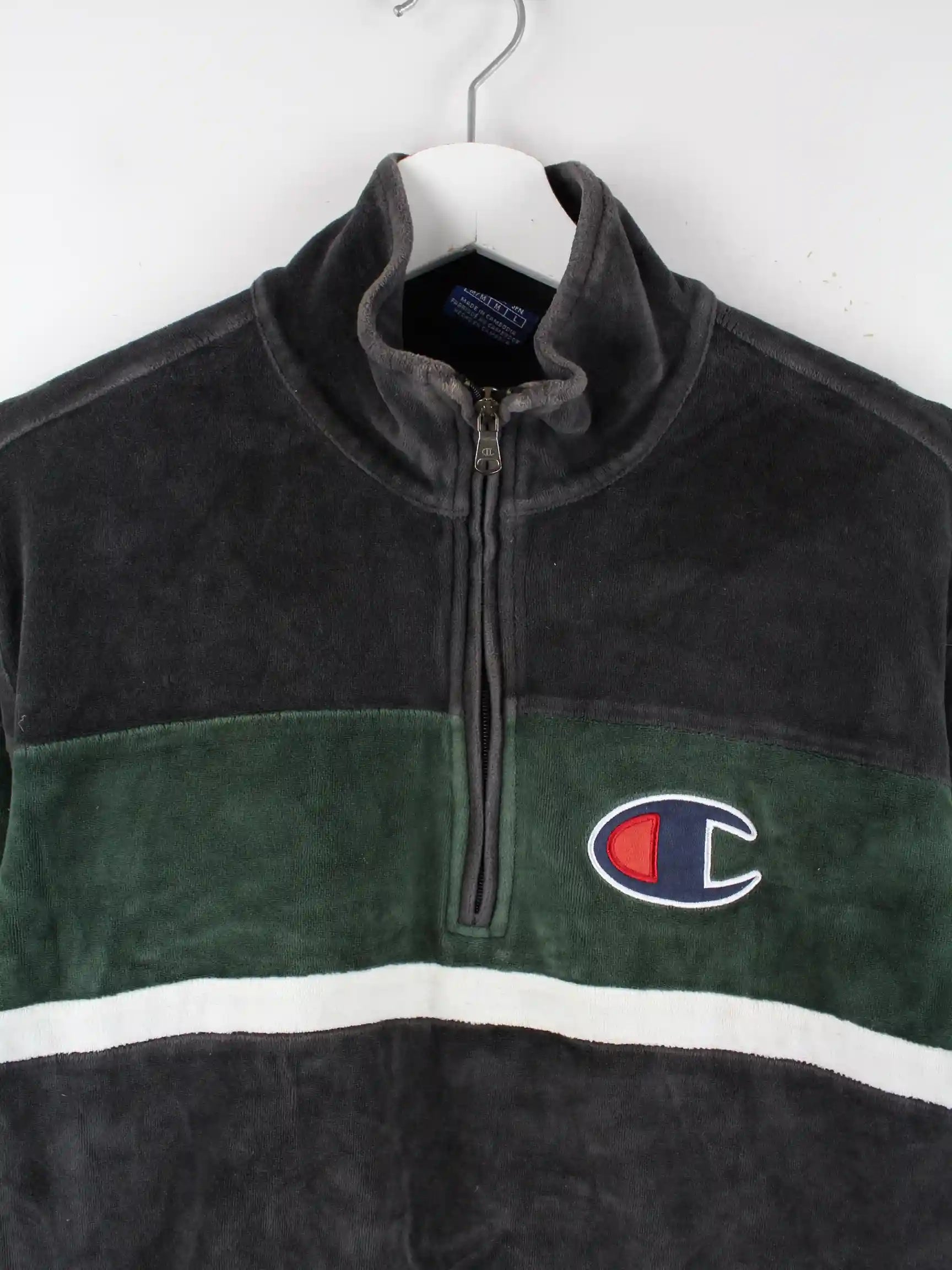 Champion Velours Half Zip Sweater Grau M