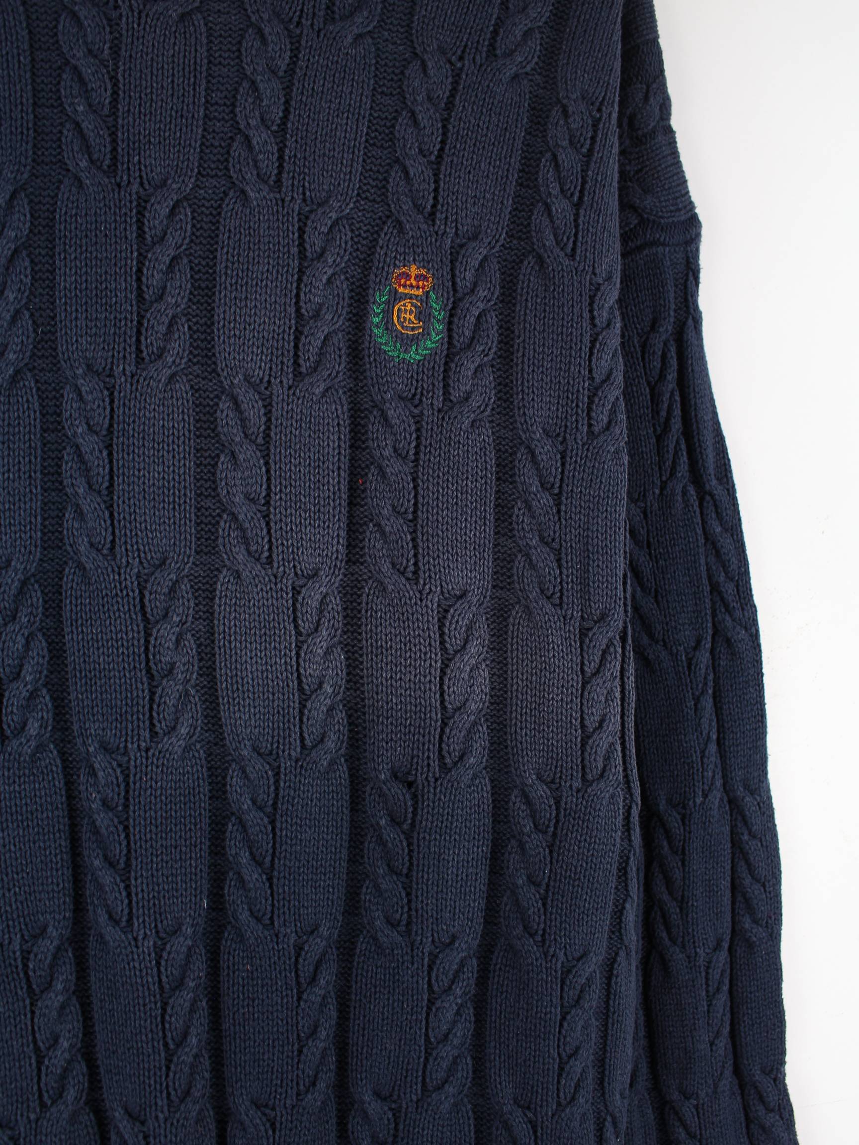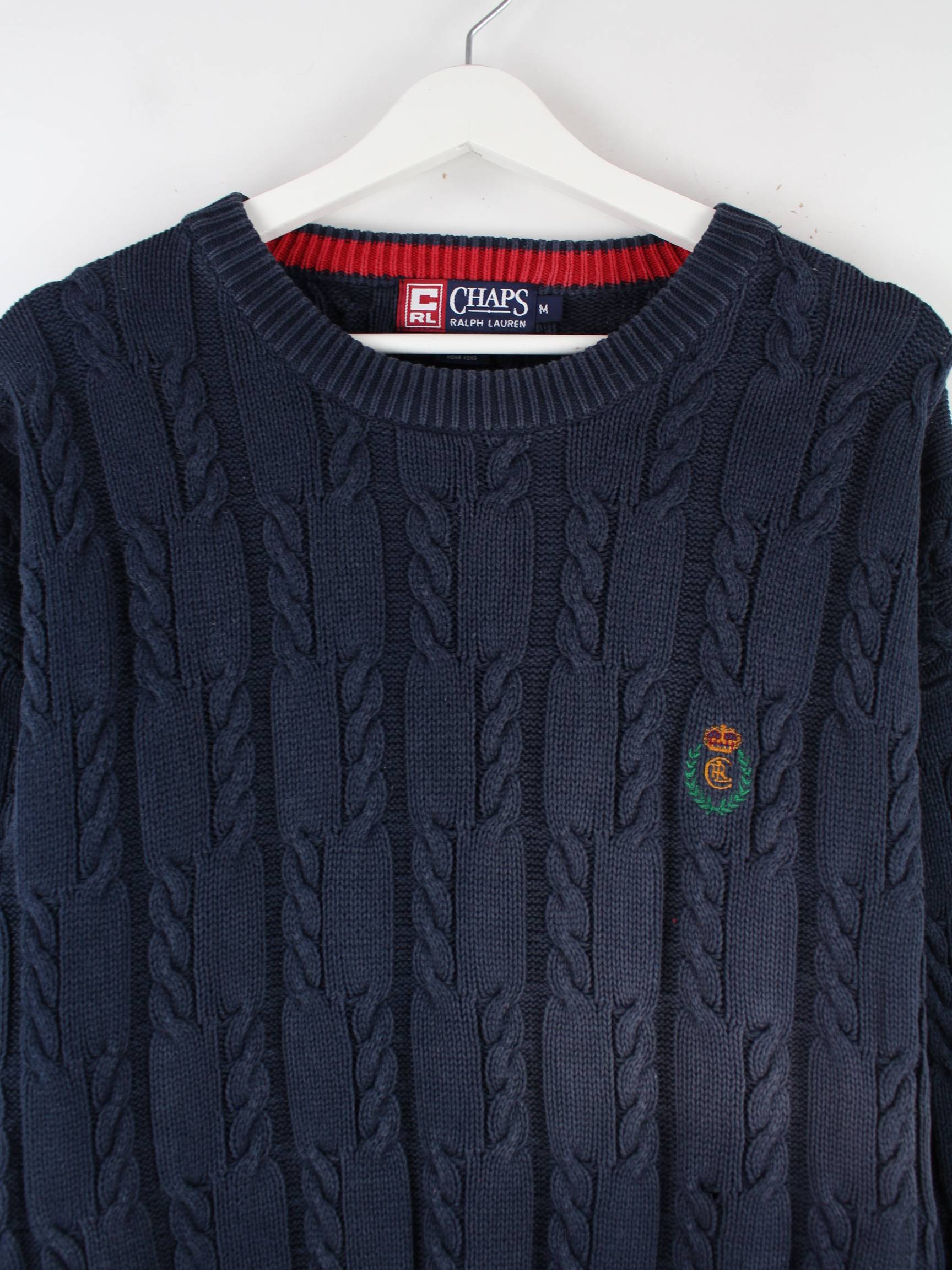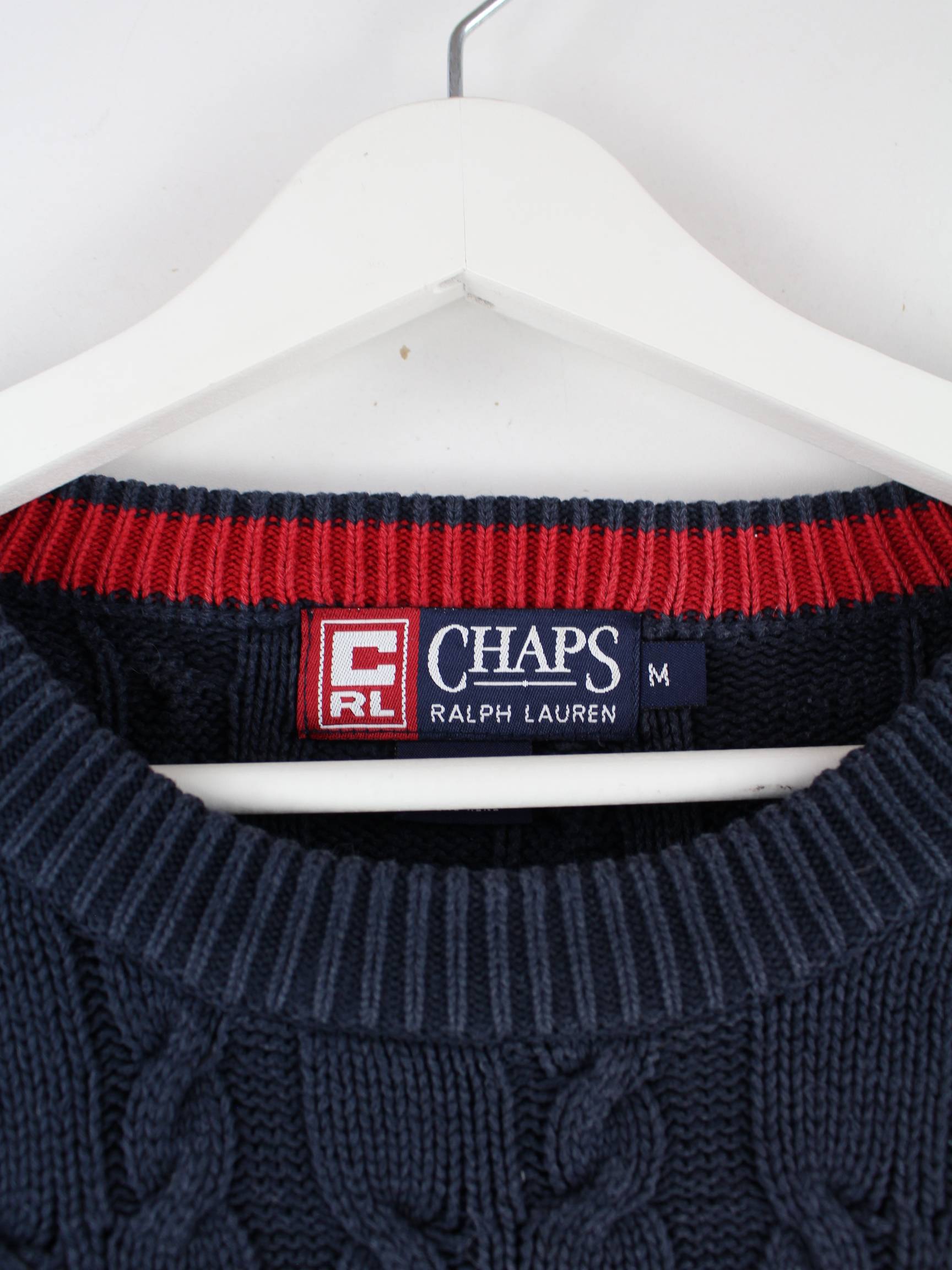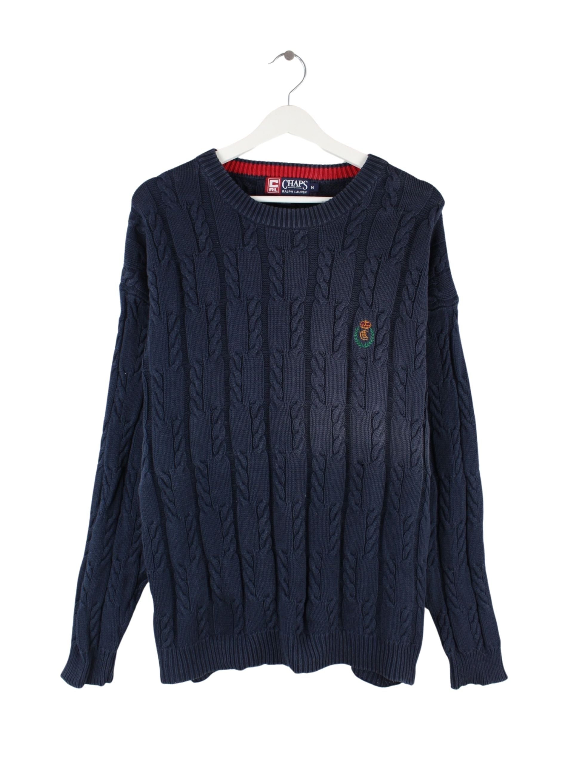 Blauer Pullover aus dem Hause Chaps by Ralph Lauren in Größe M. Er ist aus Baumwolle und in gutem Zustand bei uns vorrätig.