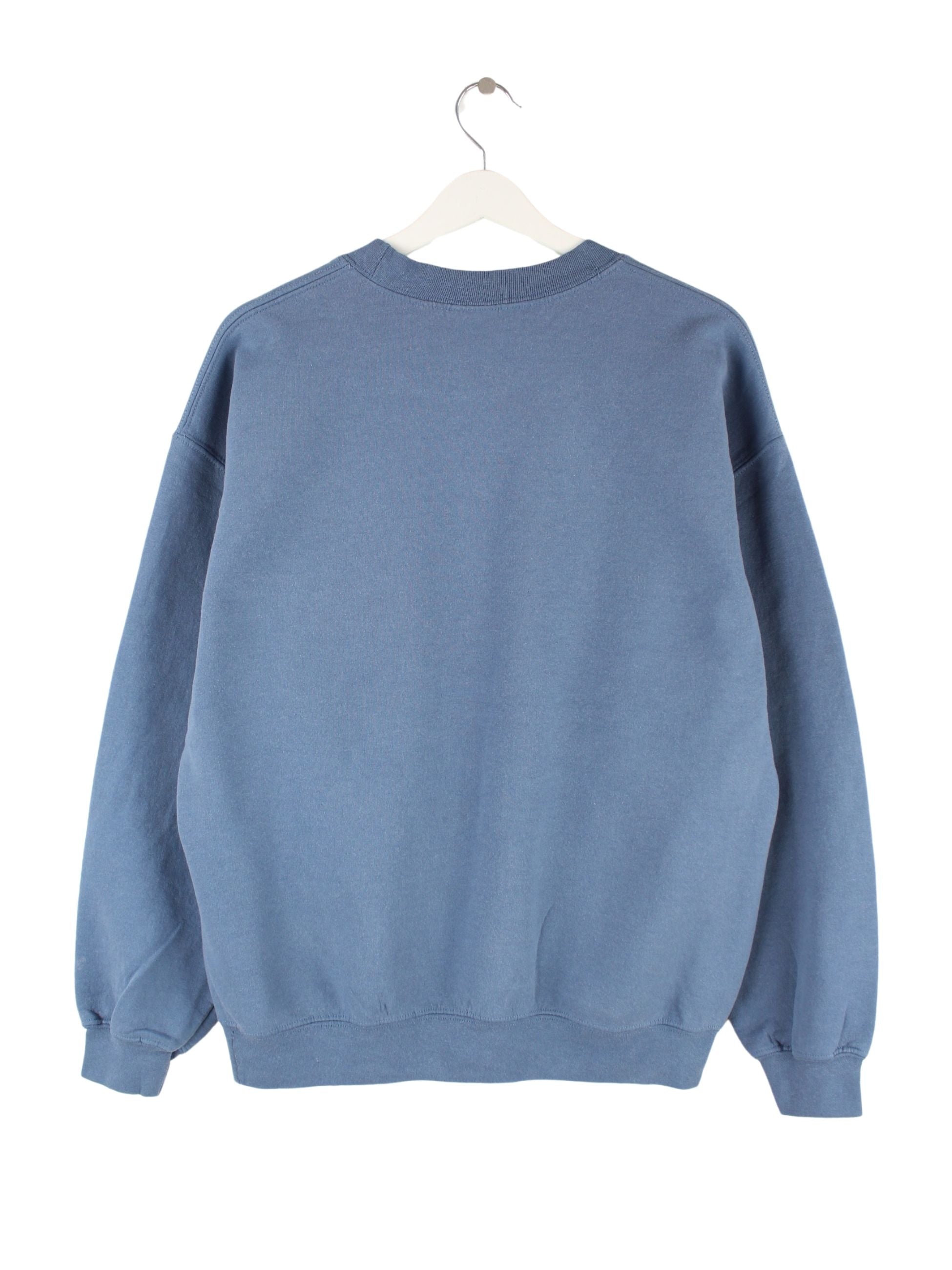 Sweater von Gildan mit Stickereien in Größe L. Er ist aus einer Baumwollmischung produziert und in Blau in Stock.