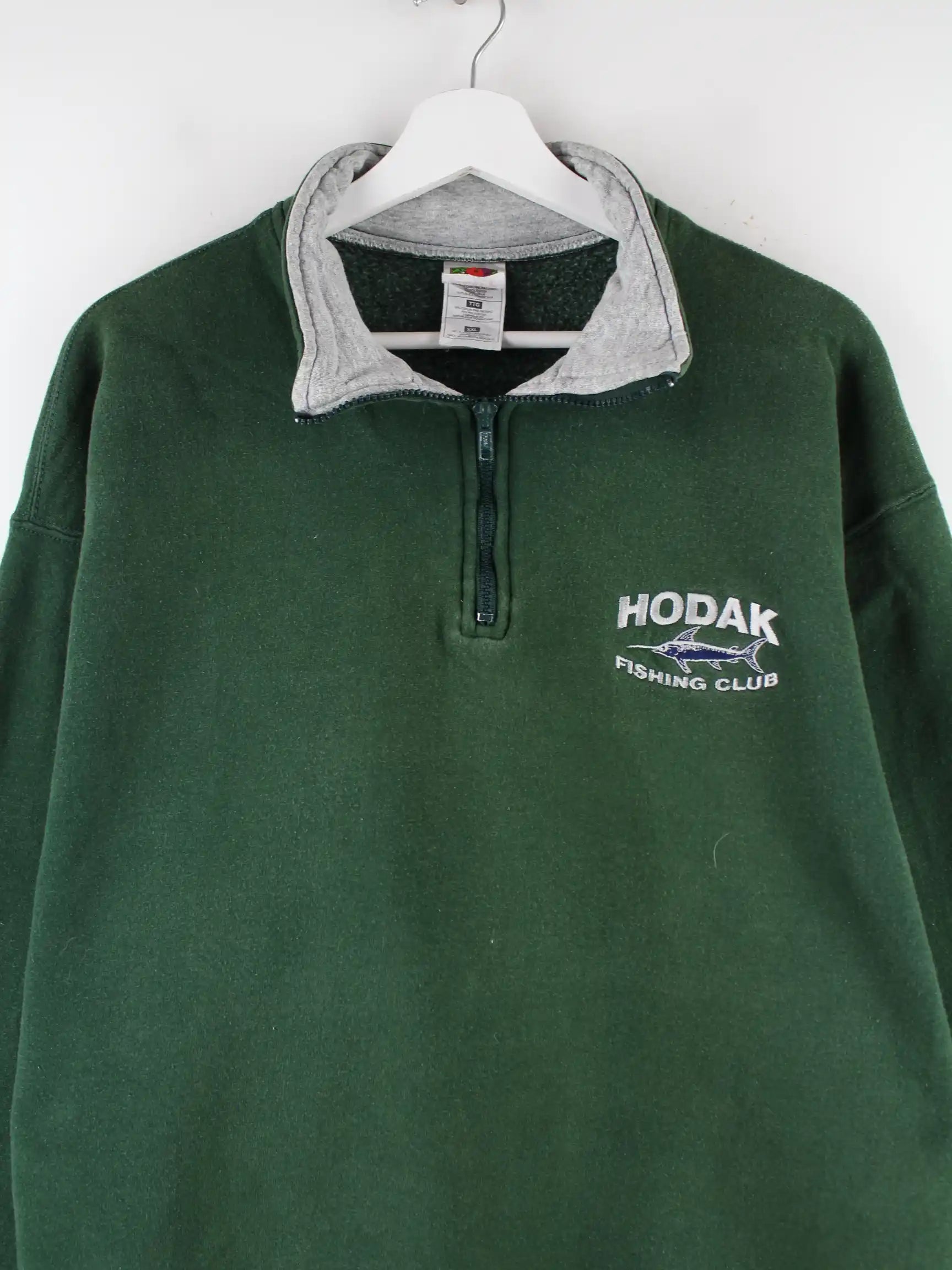 Fruit of the Loom 90s Vintage Fishing Embroidered Half Zip Sweater Grün XXL