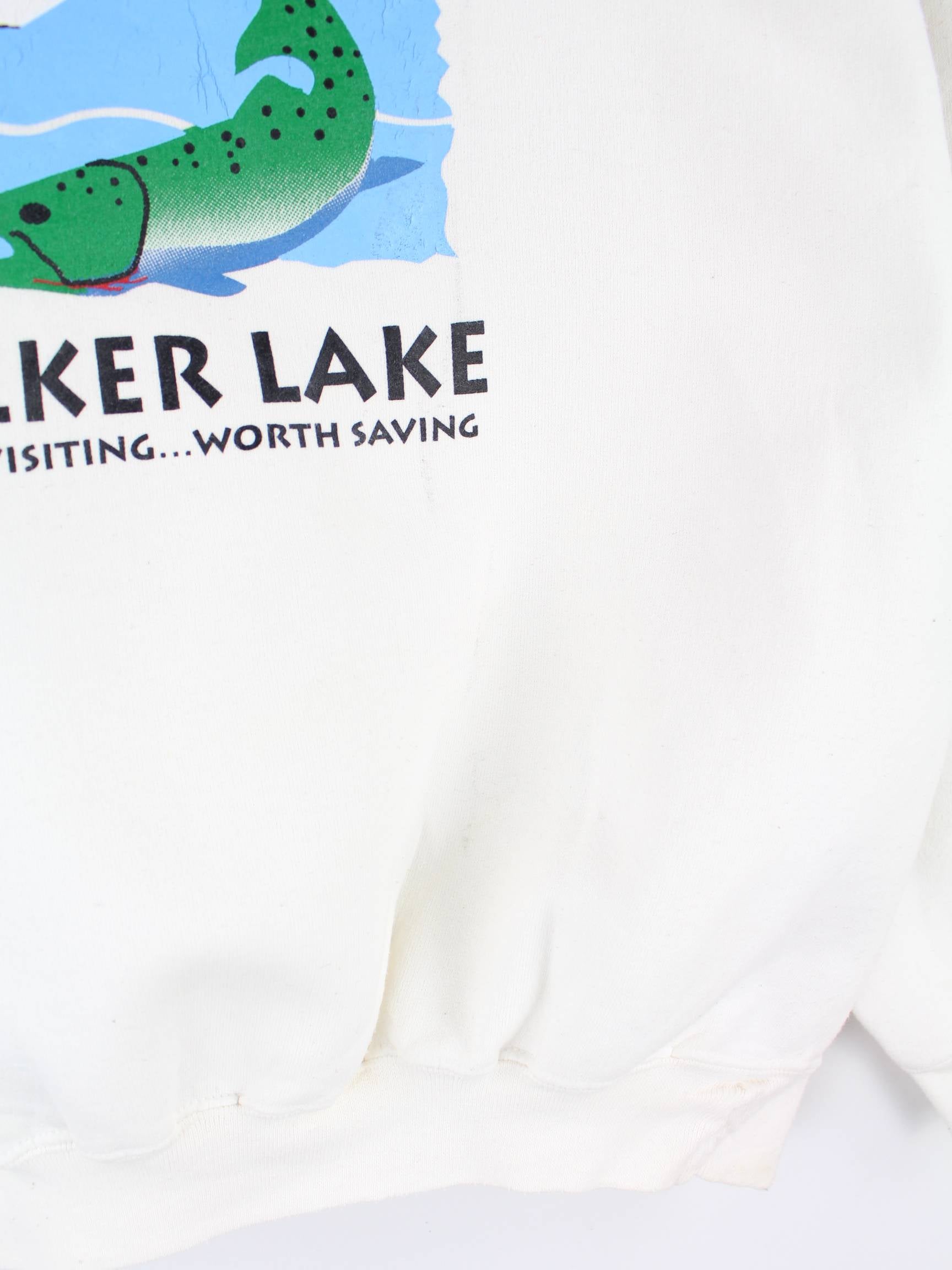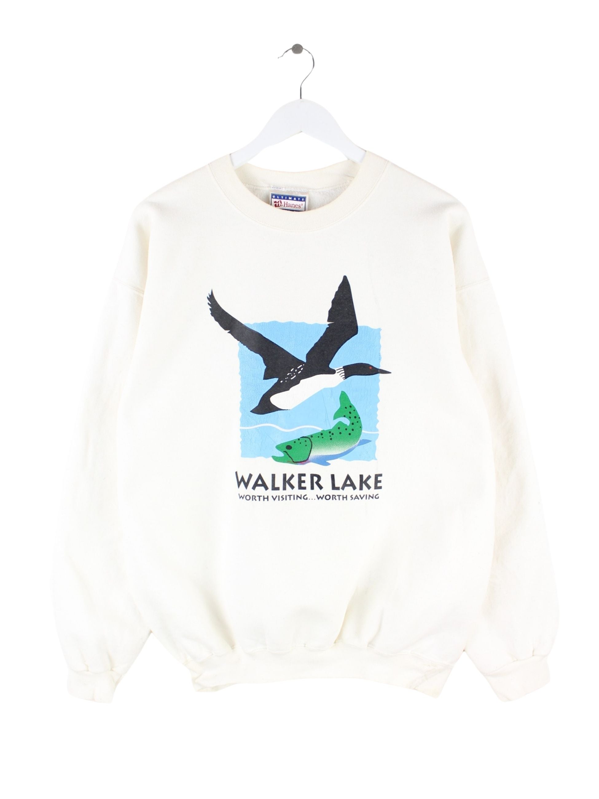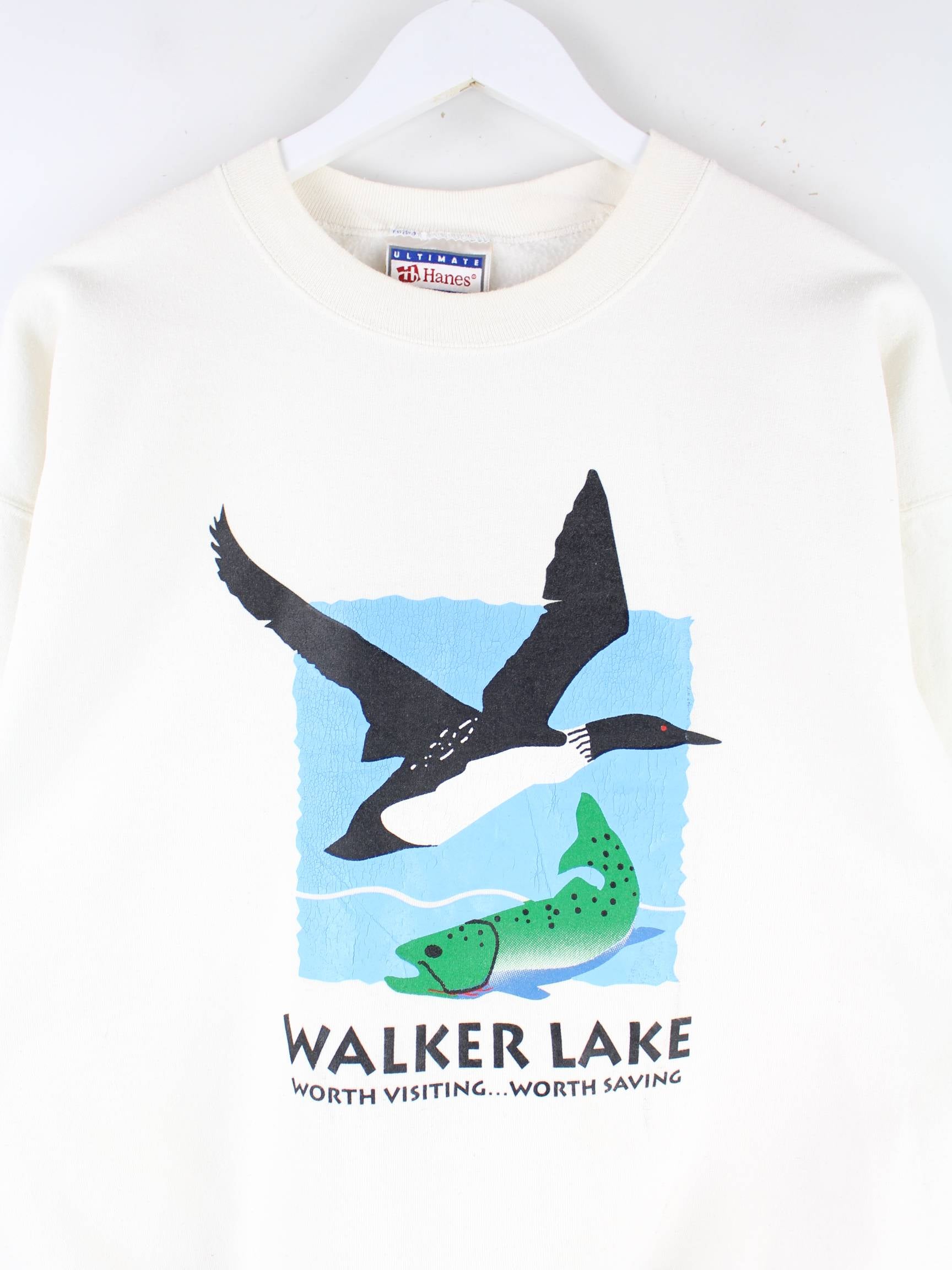 Hanes 90s Vintage Walker Lake Print Heavy Sweater Beige L