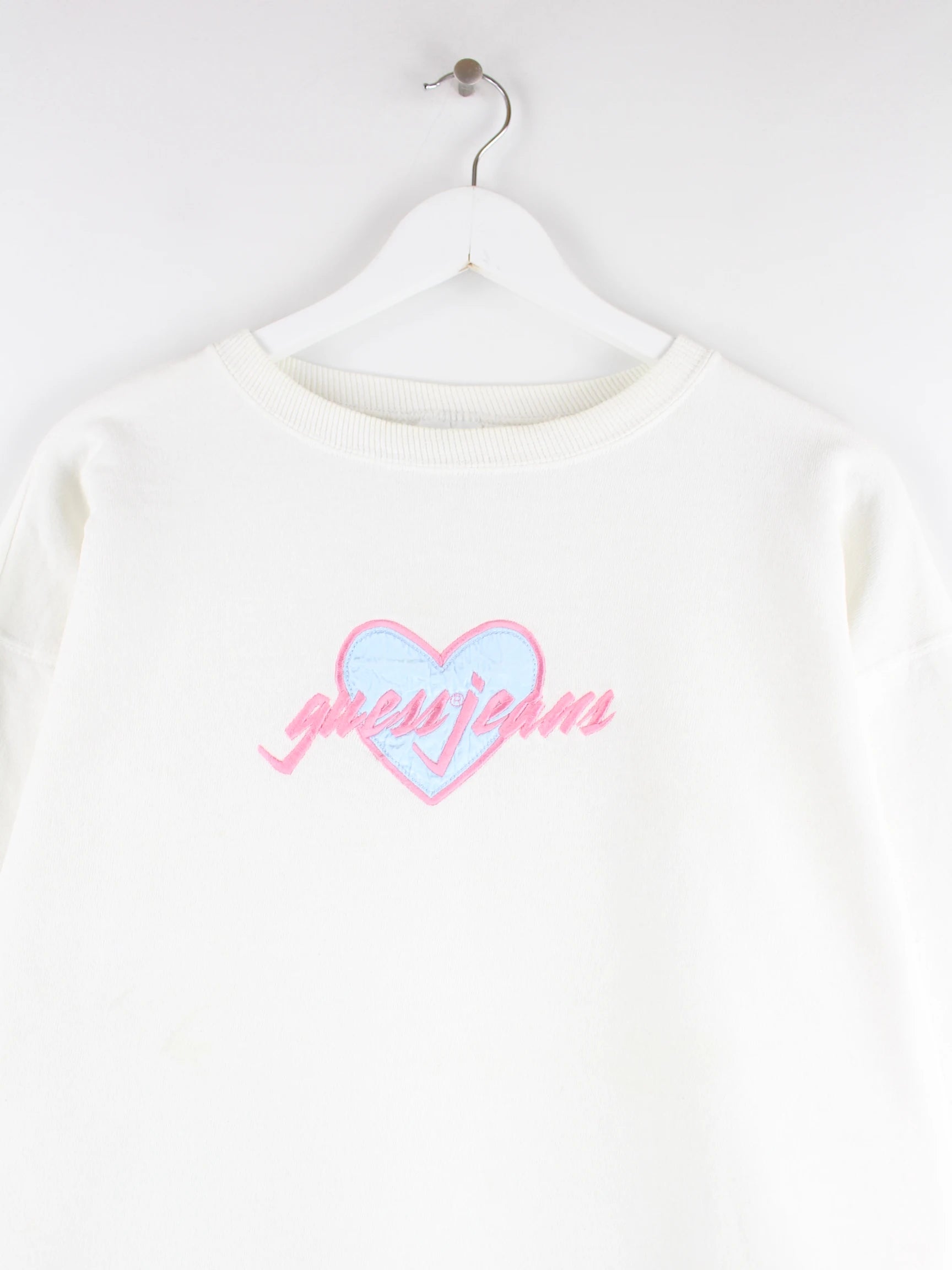 Guess Damen 90s Vintage Heart Sweater Weiß M
