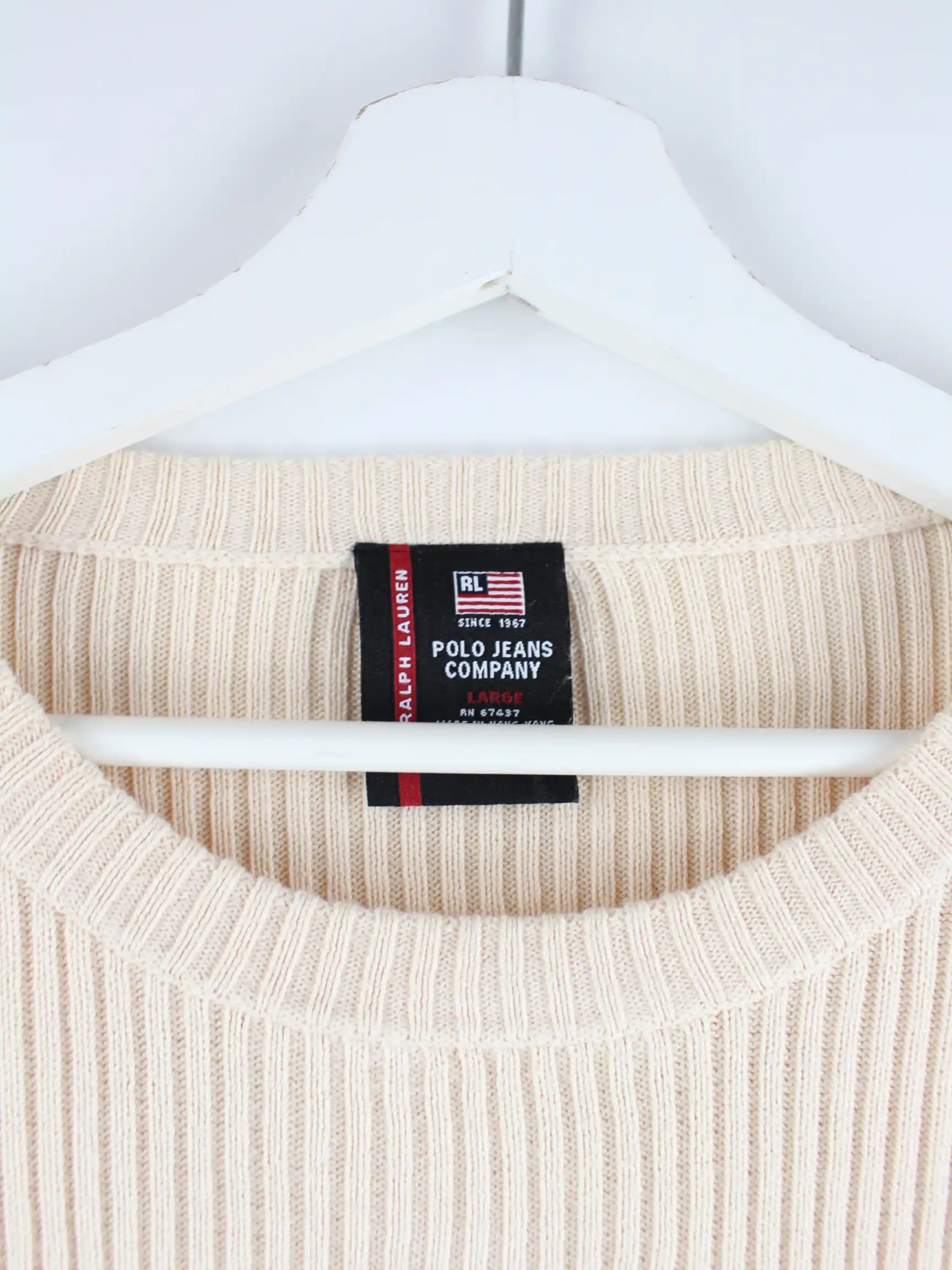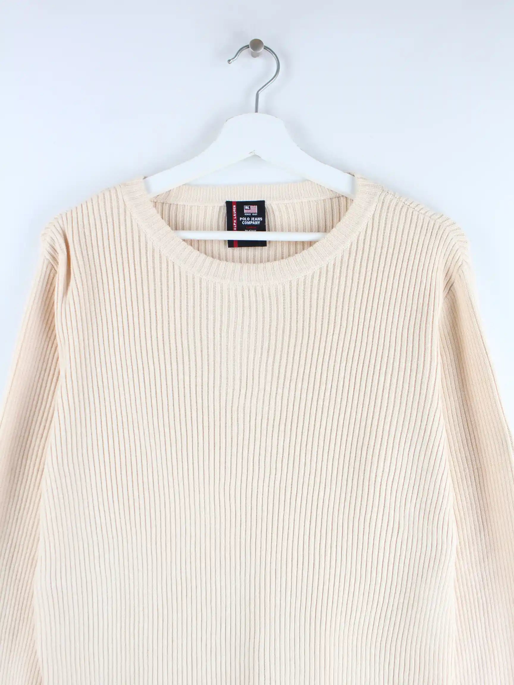 Pullover vom Brand Ralph Lauren in Größe L. Er ist aus Baumwolle gemacht und in Beige bei uns zu bekommen.