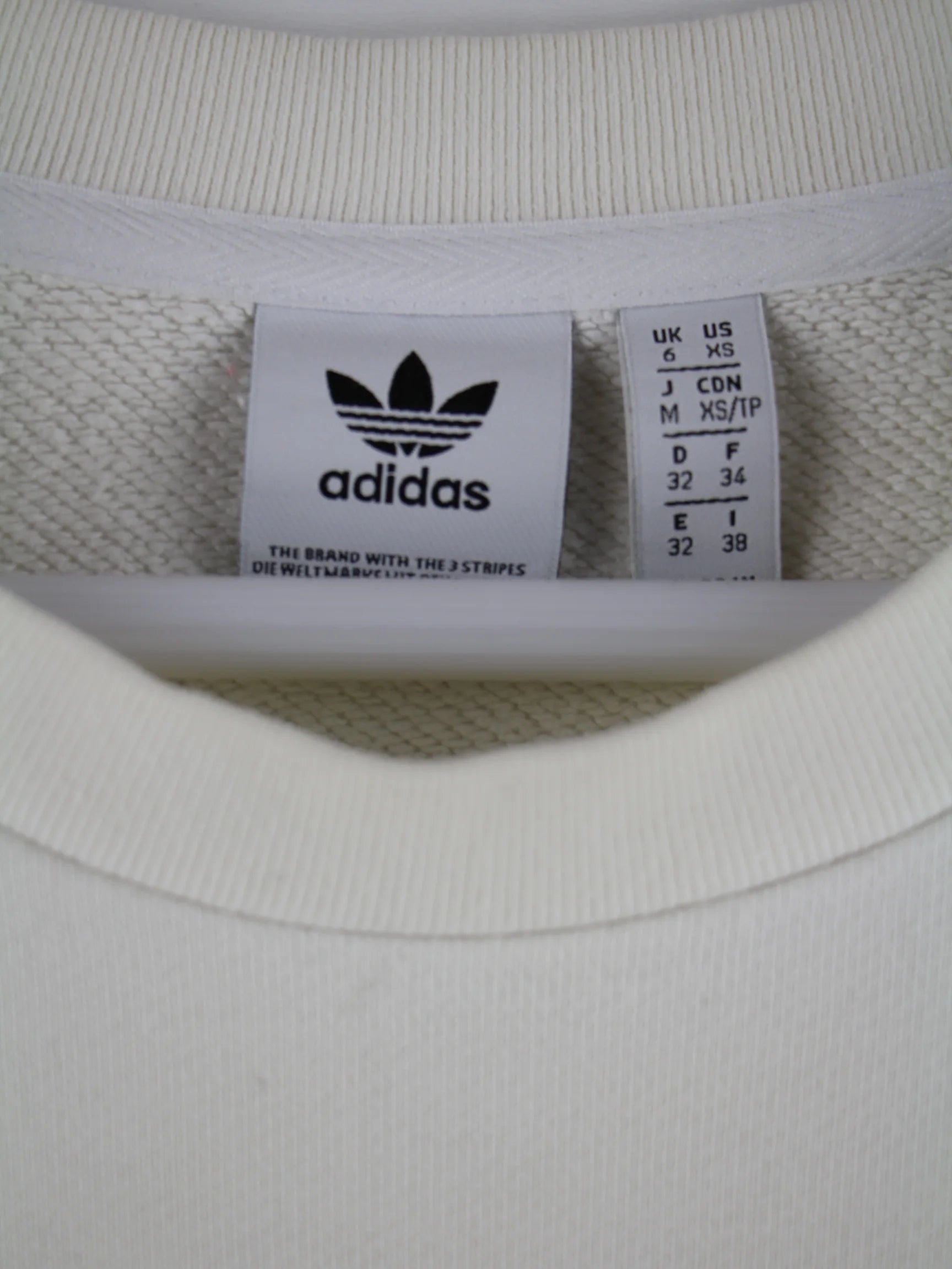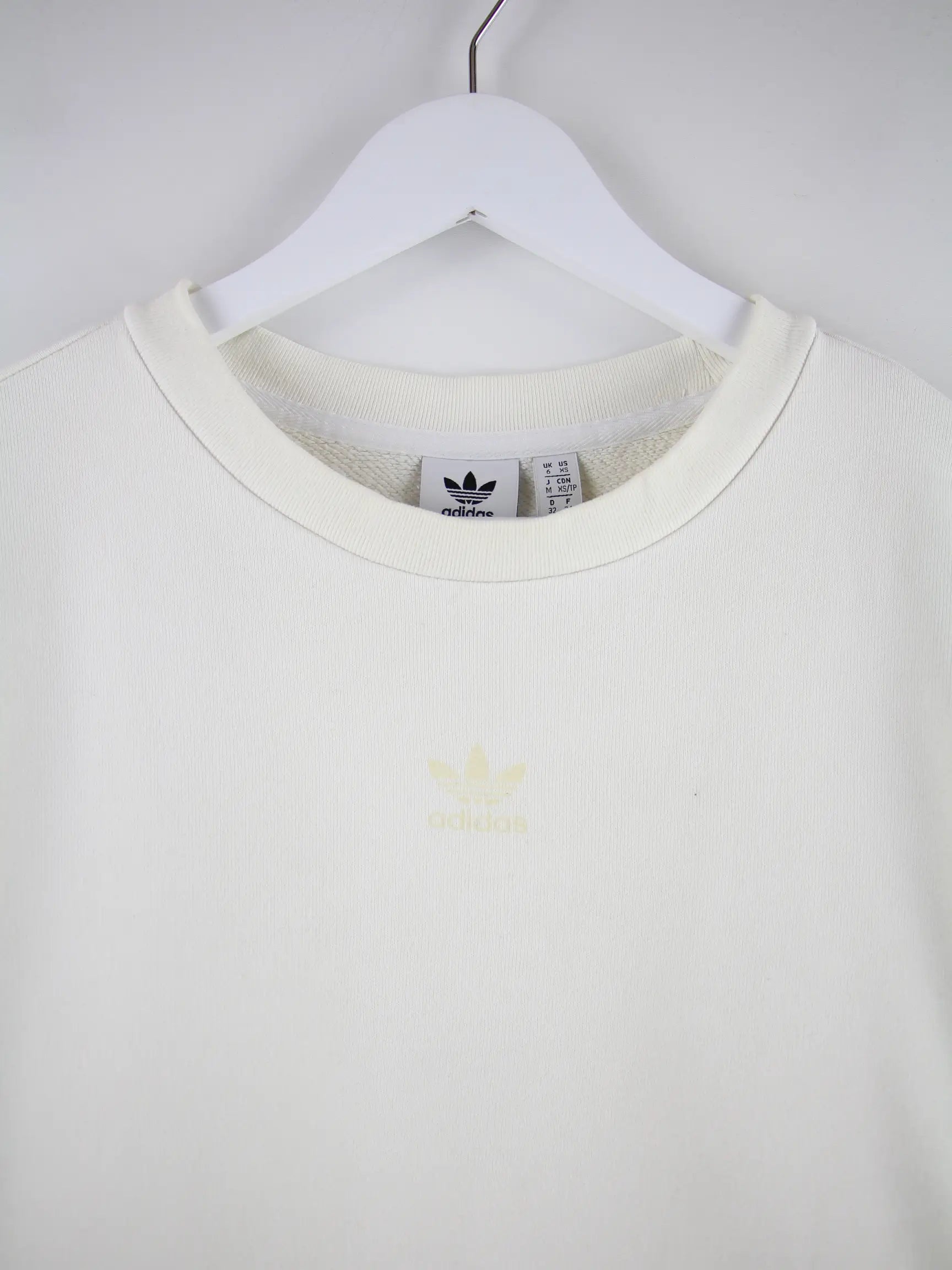 Weißer Sweater der Brand Adidas in Größe XS. Er ist aus einer Baumwollmischung und in gutem Zustand auf Lager. Mit chiquem Print.