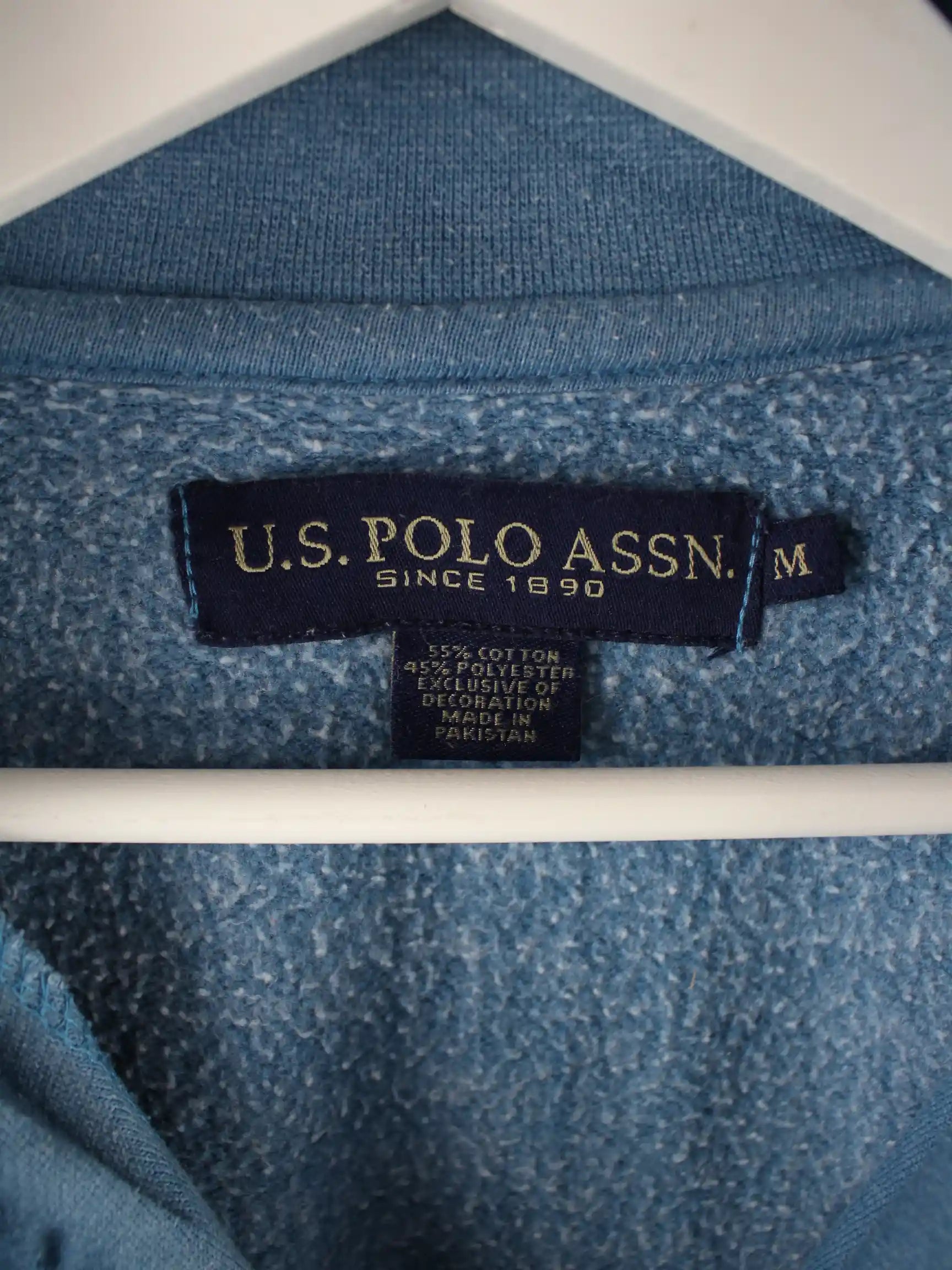 Blauer Sweater mit halbem Reißverschluß der Marke U.S. Polo ASSN. in Größe M. Er ist aus einer Baumwollmischung produziert und in gutem Zustand zu bekommen.
