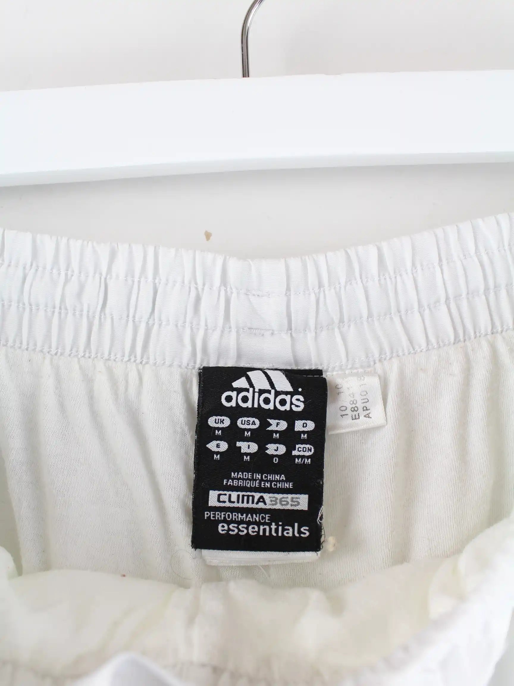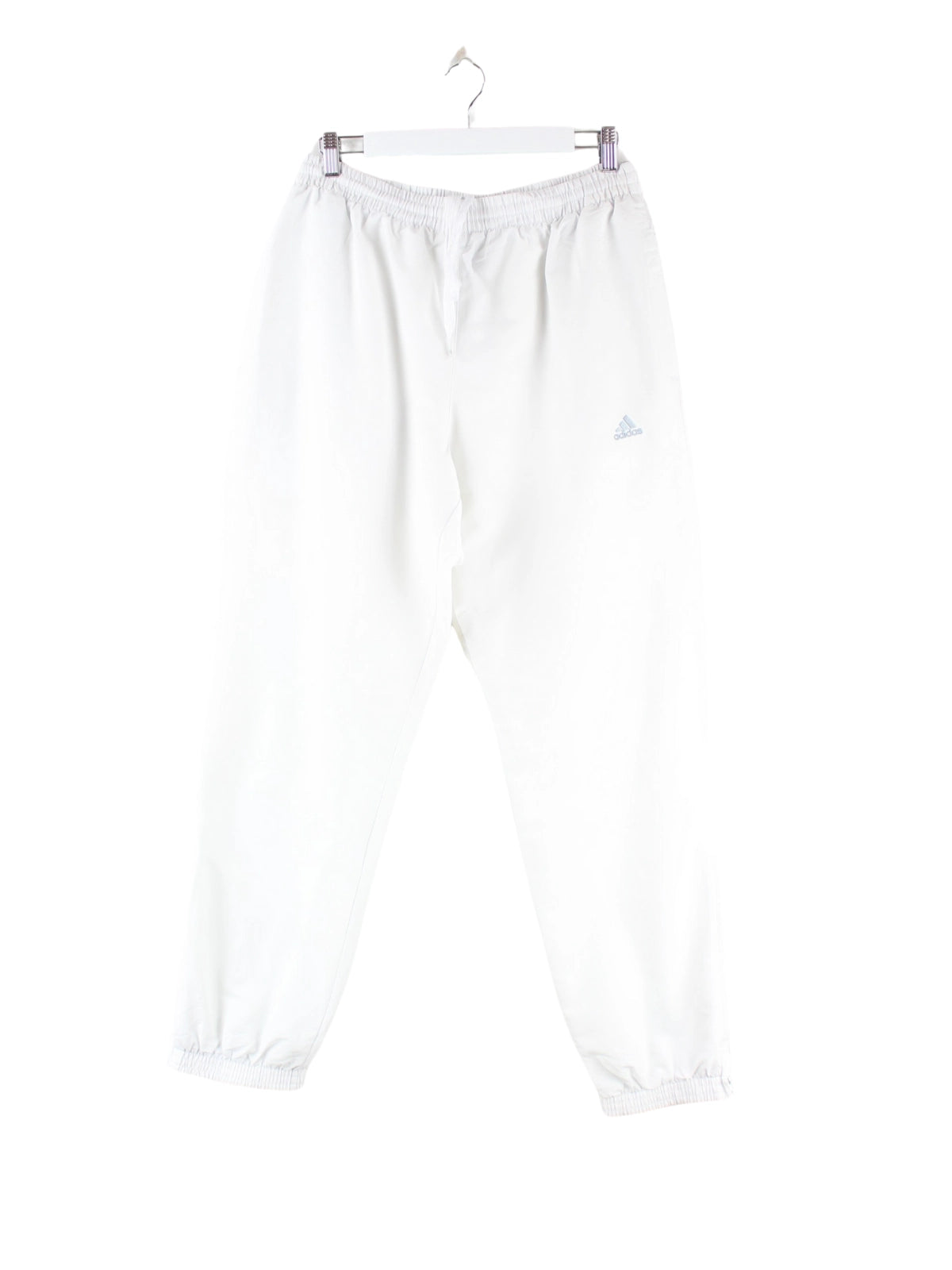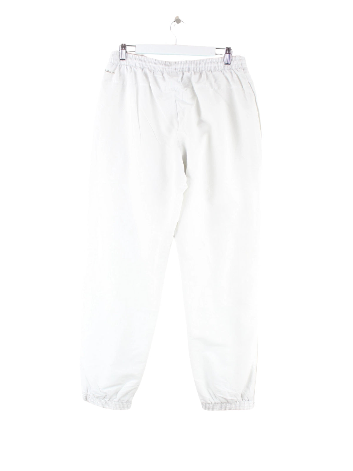 Weiße Track Pants der Marke Adidas in Größe M. Sie sind aus Synthetik angefertigt und in sehr gutem Zustand zu bekommen.