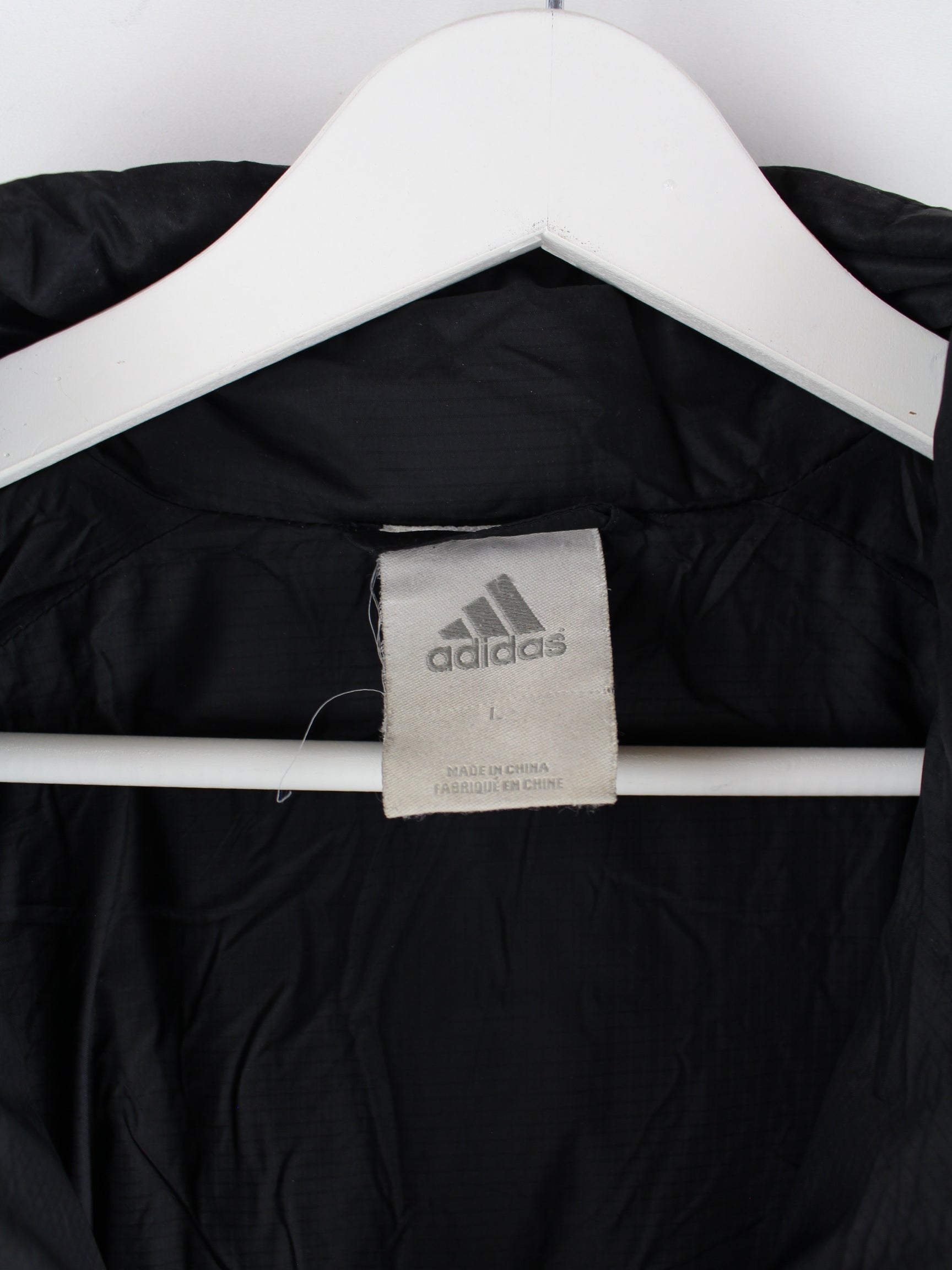 Schwarze Jacke von Adidas in Größe L. Sie ist aus Synthetik und in sehr gutem Zustand bei uns zu bekommen.