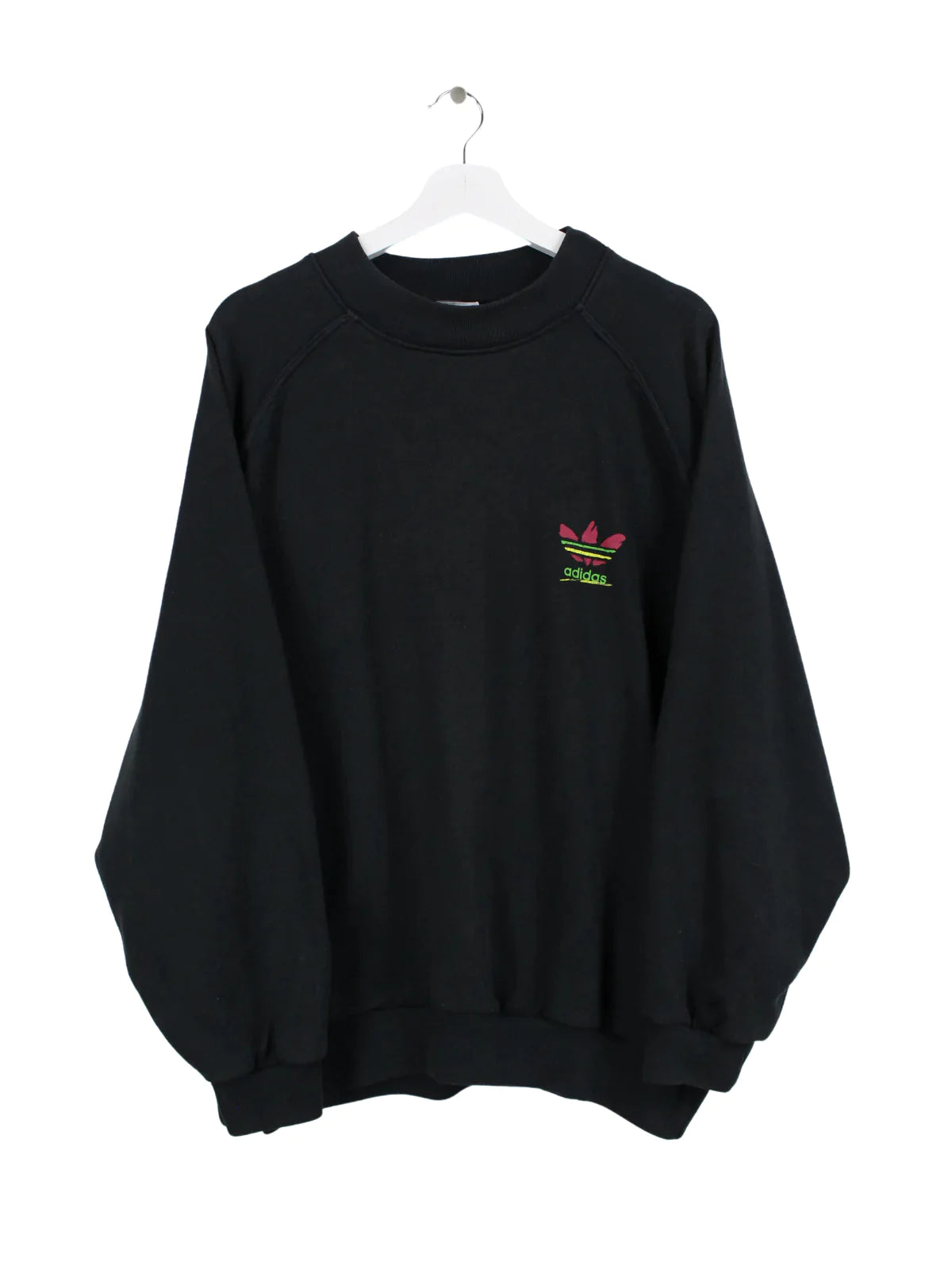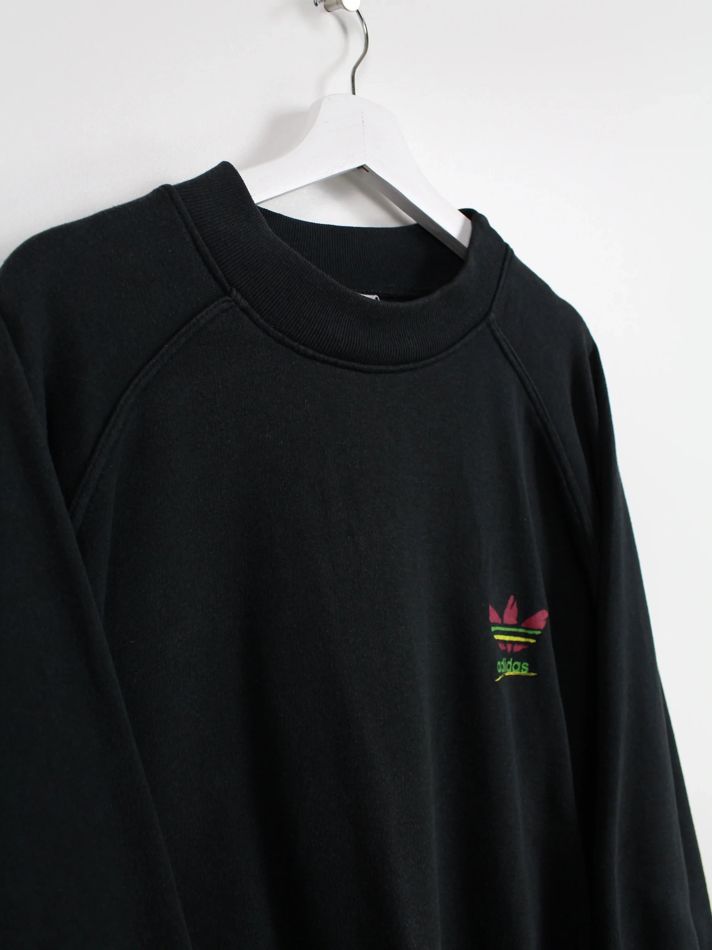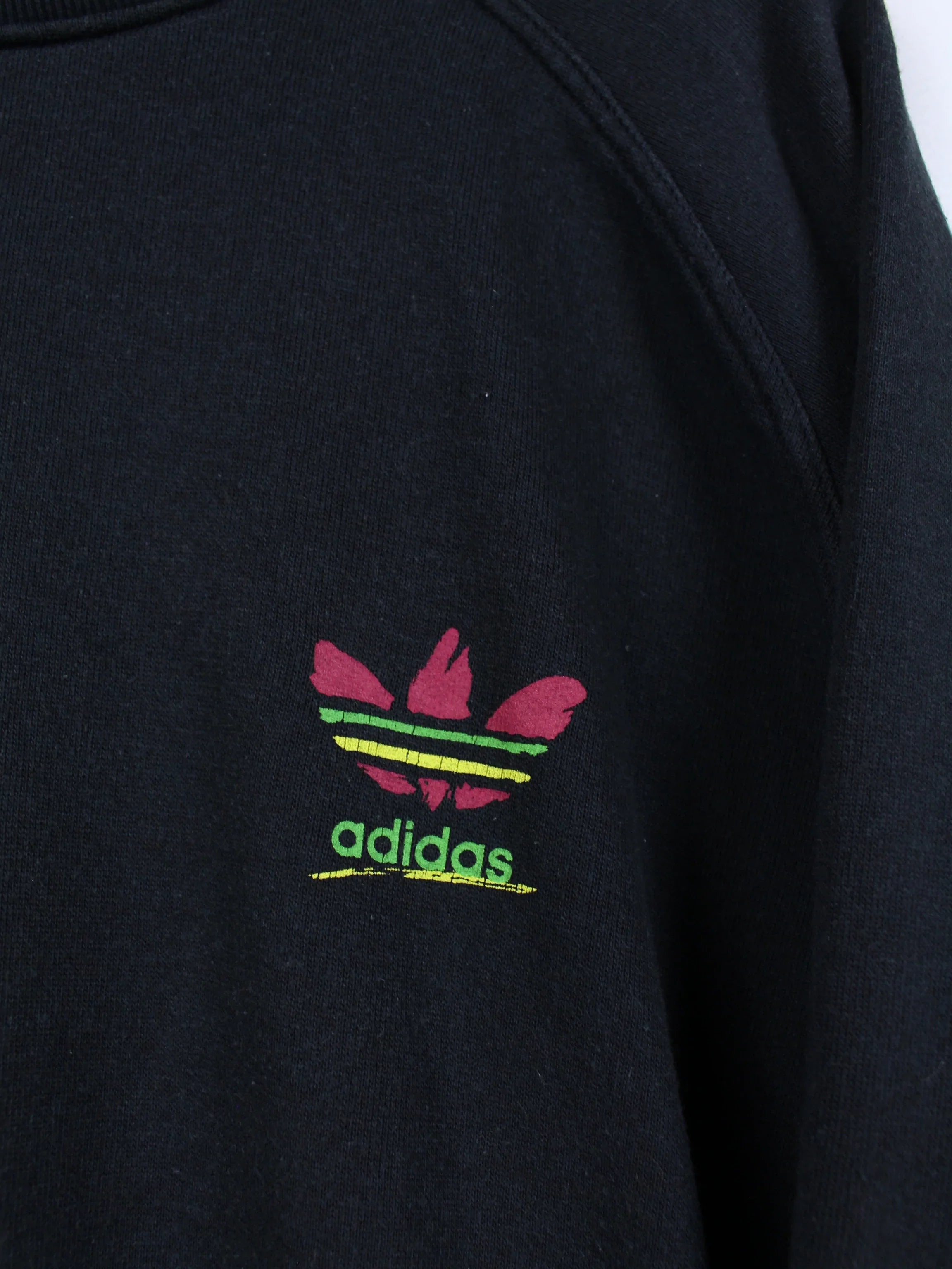 Pull Adidas 80s noir avec logo imprimé coloré.