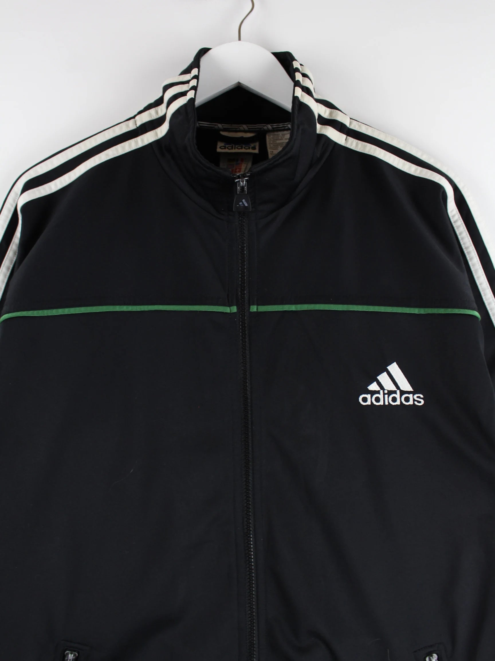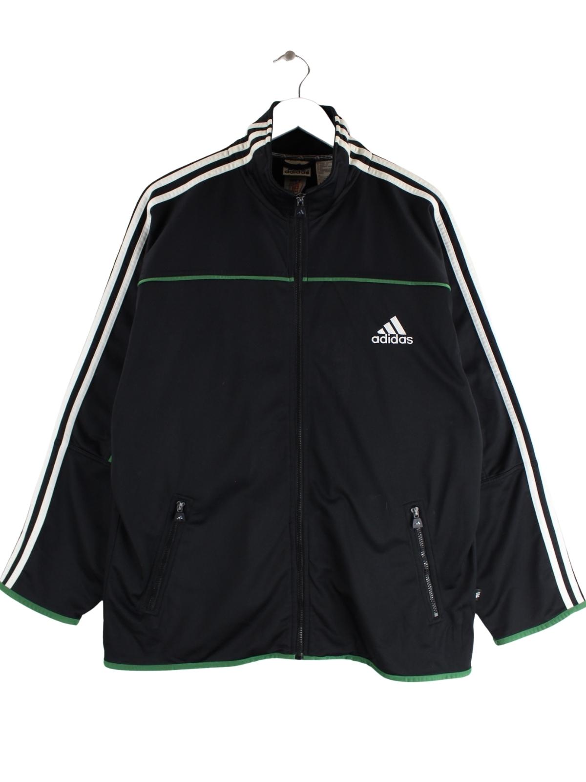 Trainingsjacke vom Label Adidas in Größe XL aus den 90'ern. Sie ist aus Synthetik produziert und in Schwarz bei uns vorrätig.