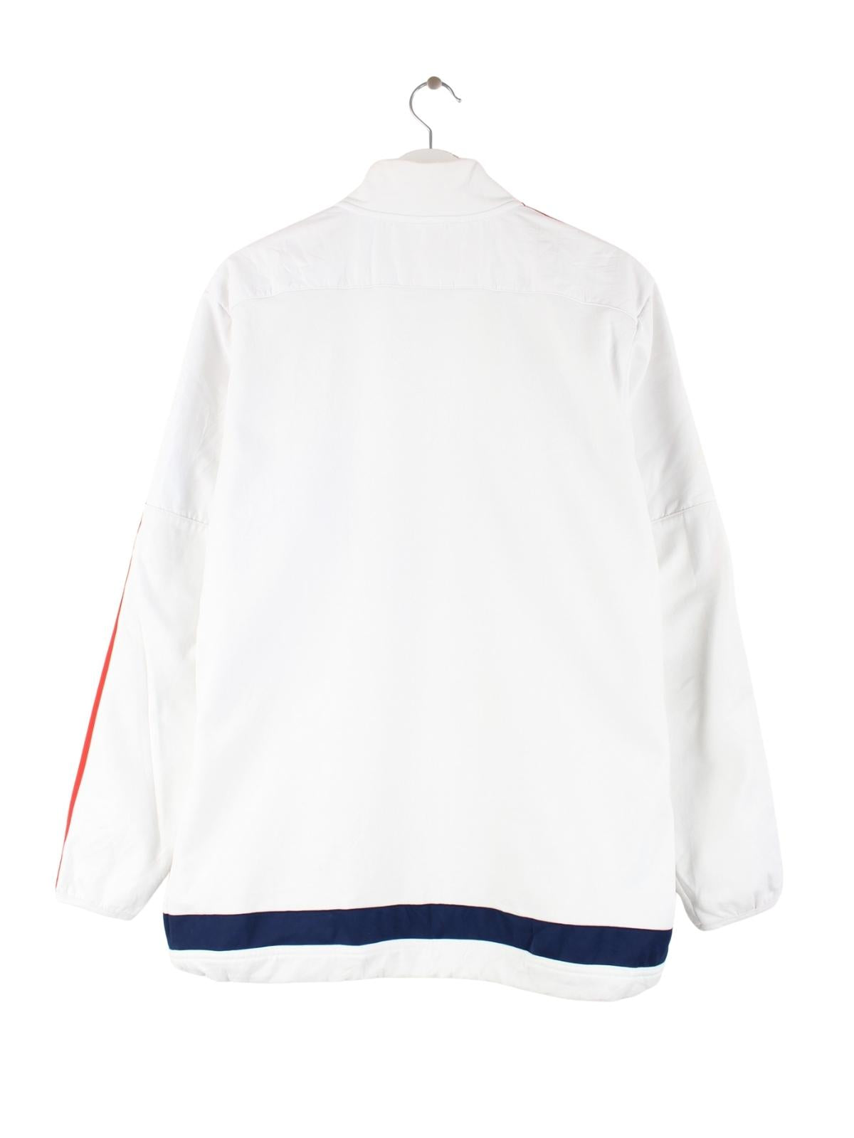 Weiße Trainingsjacke vom Brand Adidas in Größe XL. Sie ist aus Synthetik und in gutem Zustand in Stock.