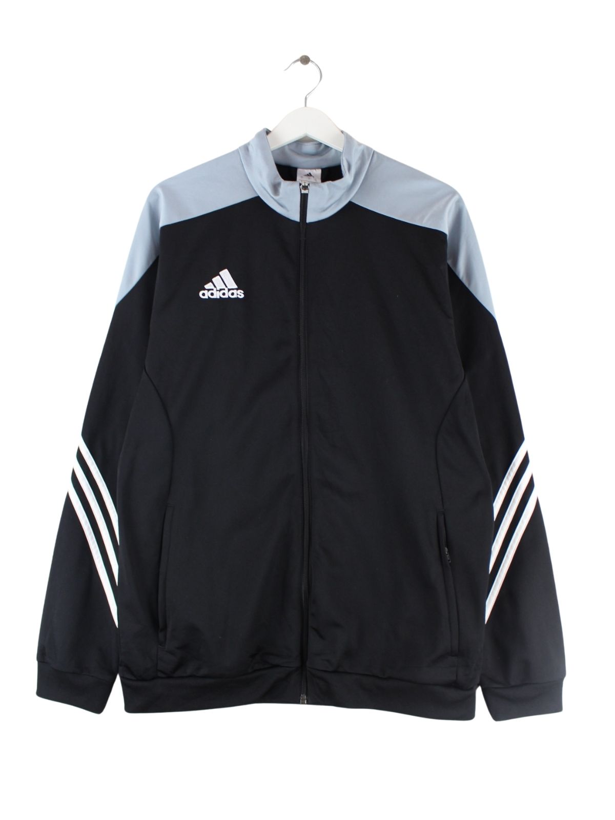 Schwarze Trainingsjacke von Adidas in Größe L. Sie ist aus Synthetik produziert und in sehr gutem Zustand in Stock.