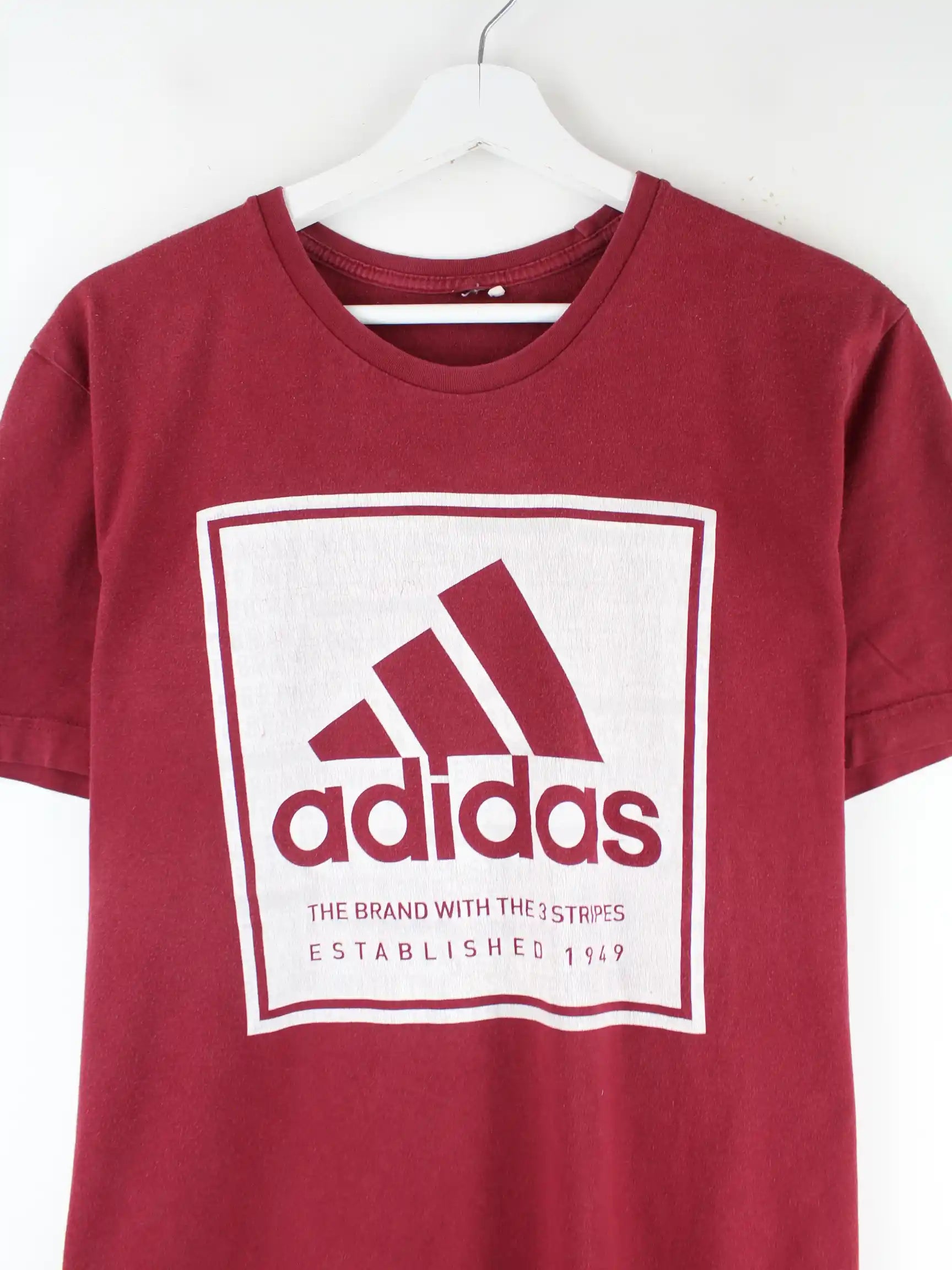 Rotes T-Shirt der Marke Adidas in Größe L. Es ist aus Baumwolle gefertigt und in gutem Zustand in Stock. Mit chiquem Print.