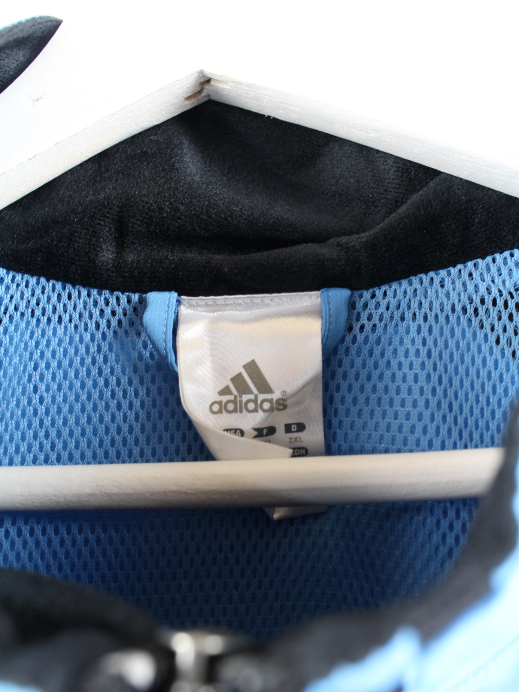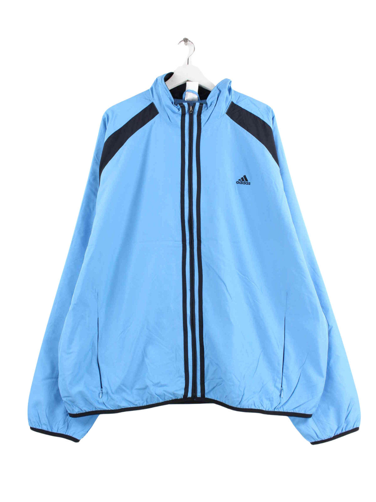 Trainingsjacke der Marke Adidas in Größe XXL aus Anfang der 2000'er. Sie ist aus Synthetik und in Blau vorrätig.