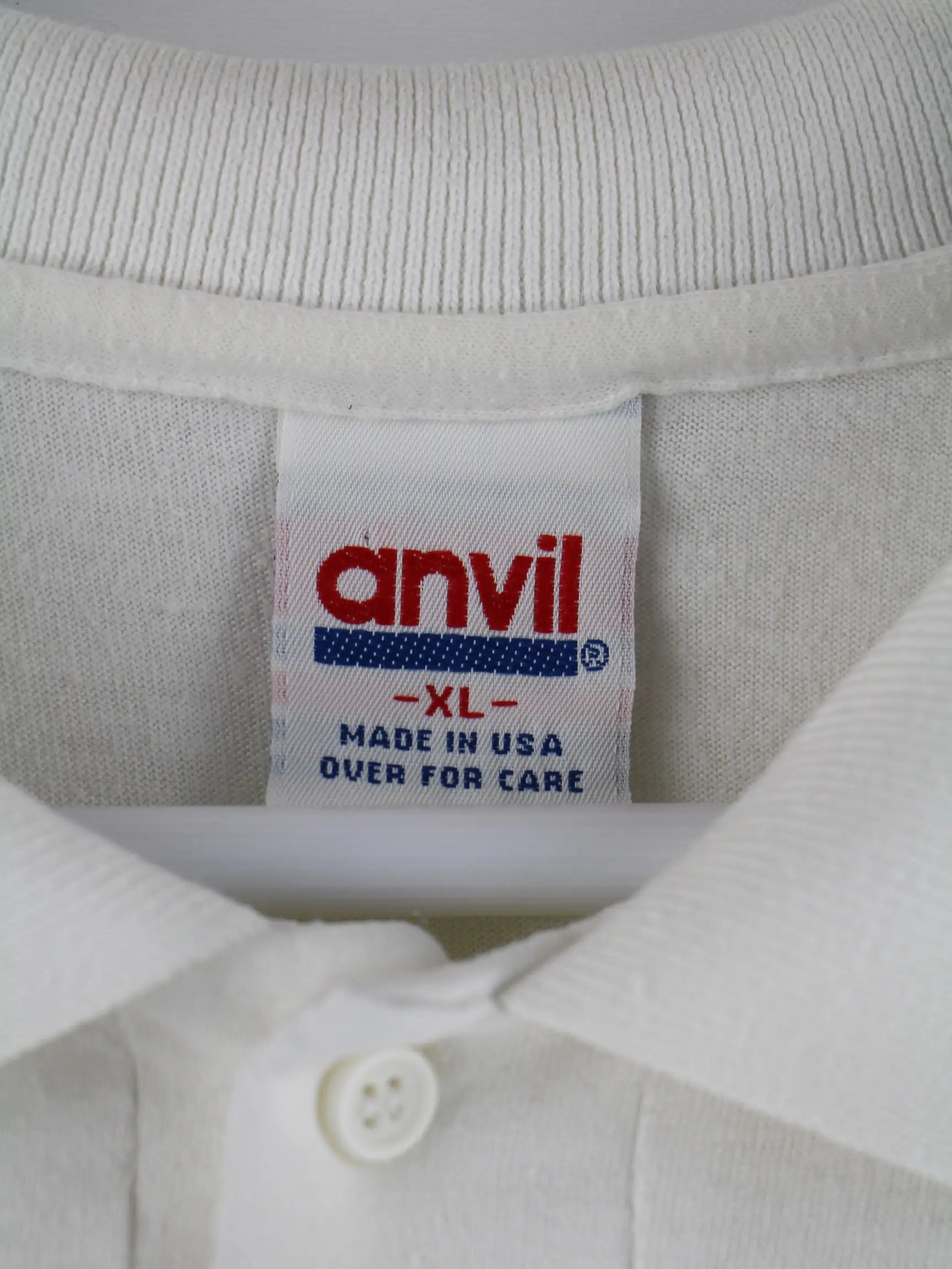 Weißes Poloshirt vom Label Anvil aus den 90'ern in Größe XL. Es ist aus Baumwolle gefertigt und in gutem Zustand in Stock. Mit seltenem Golf Print.